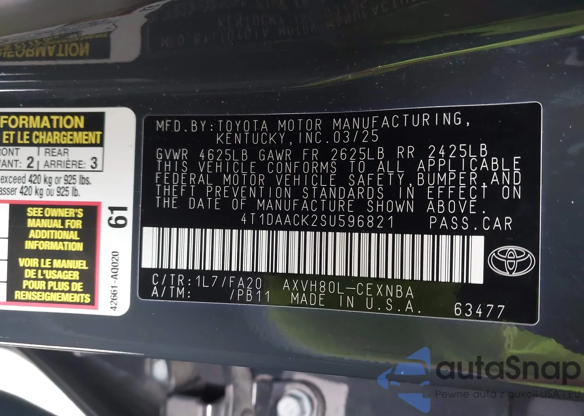 VIN: 4T1DAACK2SU596821