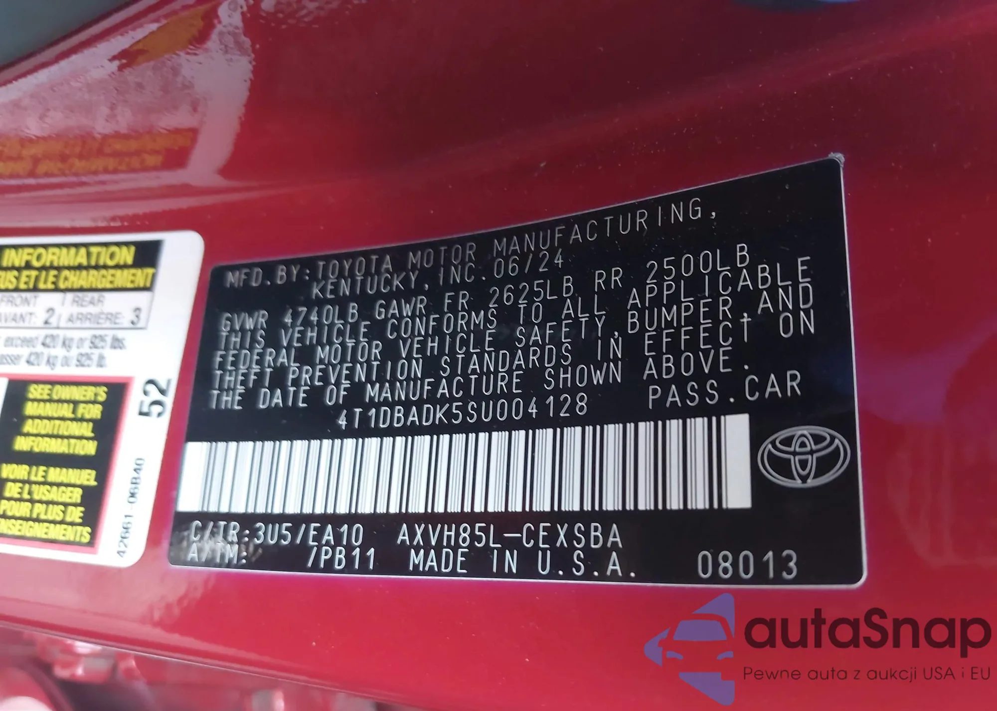 • VIN: 4T1DBADK5SU004128