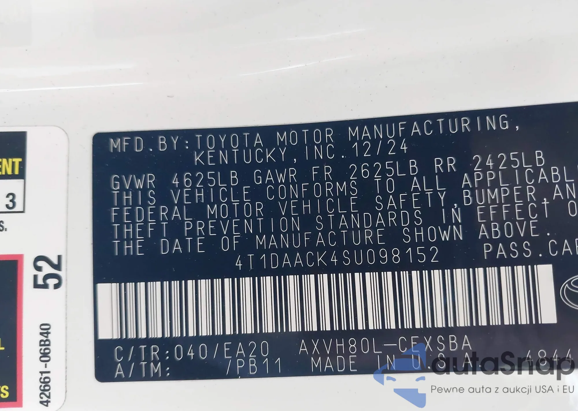 Samochód Toyota Camry 2025 (VIN 4T1DAACK4SU098152) był już licytowany 1 razy i/lub sprzedaje go niezweryfikowany sprzedawca. Zalecamy raport Carfax i potwierdzenie możliwości rejestracji pojazdu przed zakupem.