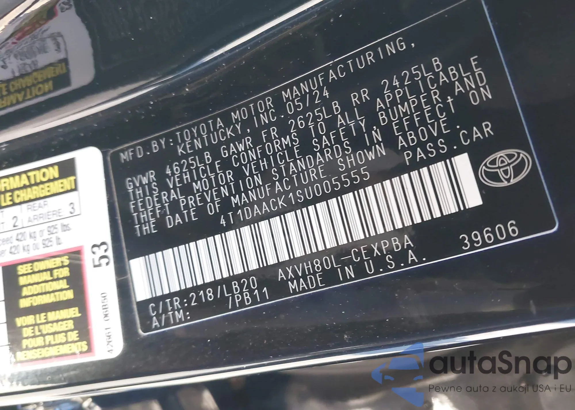 Samochód Toyota Camry 2025 (VIN 4T1DAACK1SU005555) nie był wcześniej licytowany. Dokumenty są czyste, przebieg odpowiada lub jest niższy niż średnia rynku. Sprzedaje go firma ubezpieczeniowa – polecamy zakup. Dostawa do portu zajmie ok. 6–8 tygodni.
