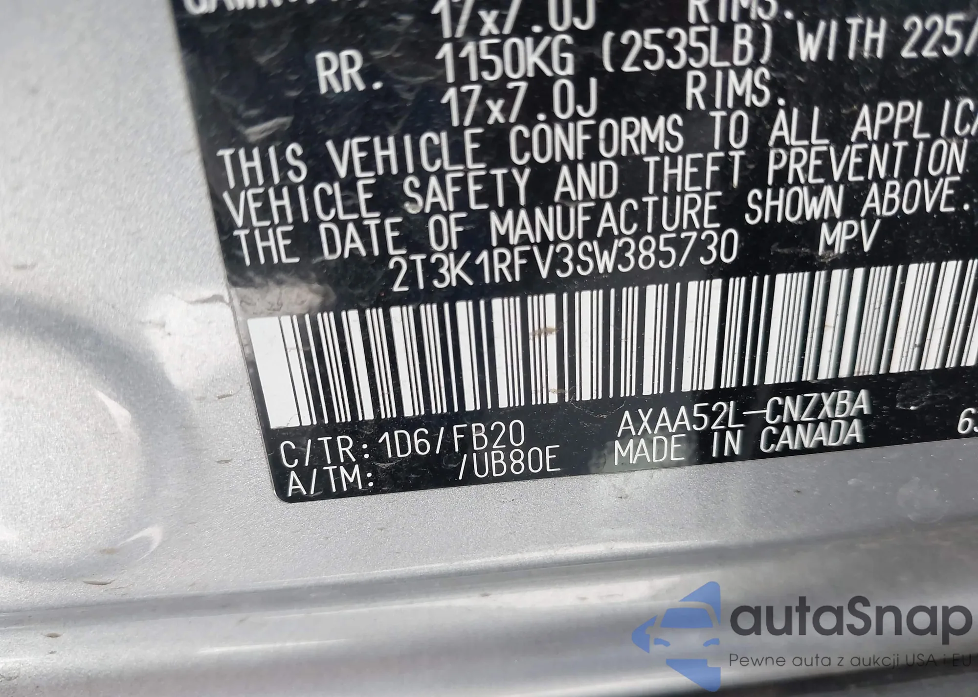 Samochód Toyota RAV 4 2025 (VIN 2T3K1RFV3SW385730) nie był wcześniej licytowany. Dokumenty są czyste, przebieg odpowiada lub jest niższy niż średnia rynku. Sprzedaje go firma ubezpieczeniowa – polecamy zakup. Dostawa do portu zajmie ok. 6–8 tygodni.