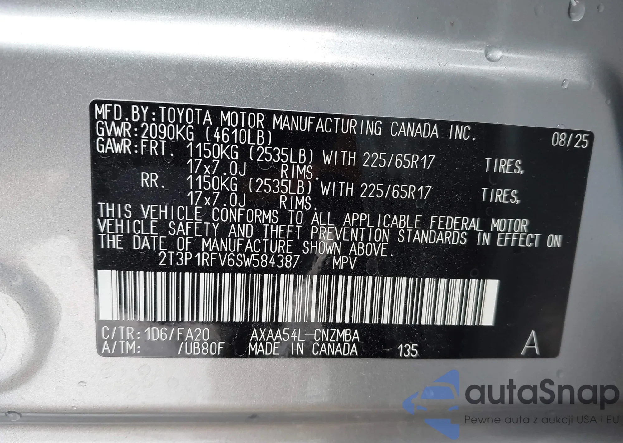 • VIN: 2T3P1RFV6SW584387