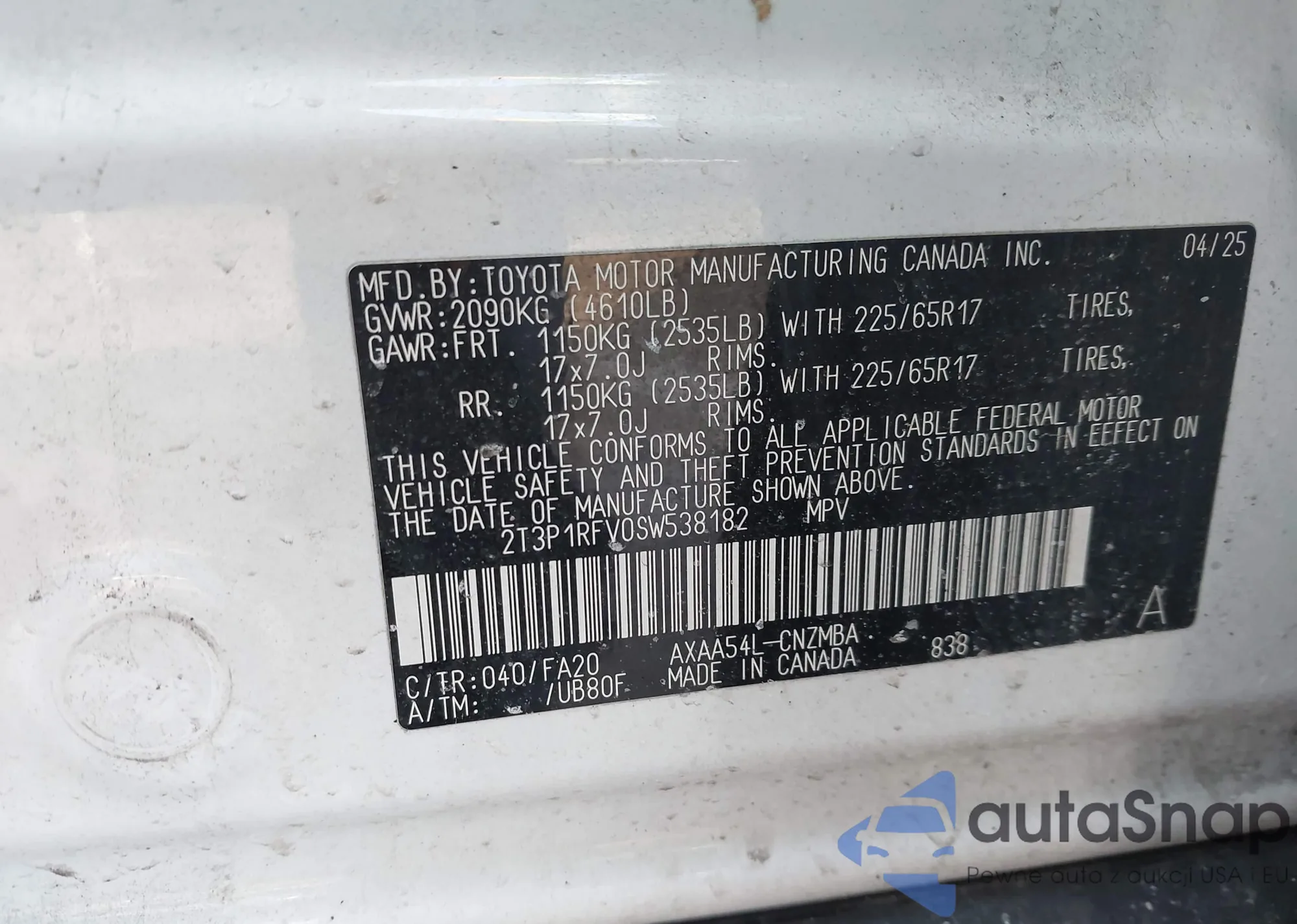VIN: 2T3P1RFV0SW538182