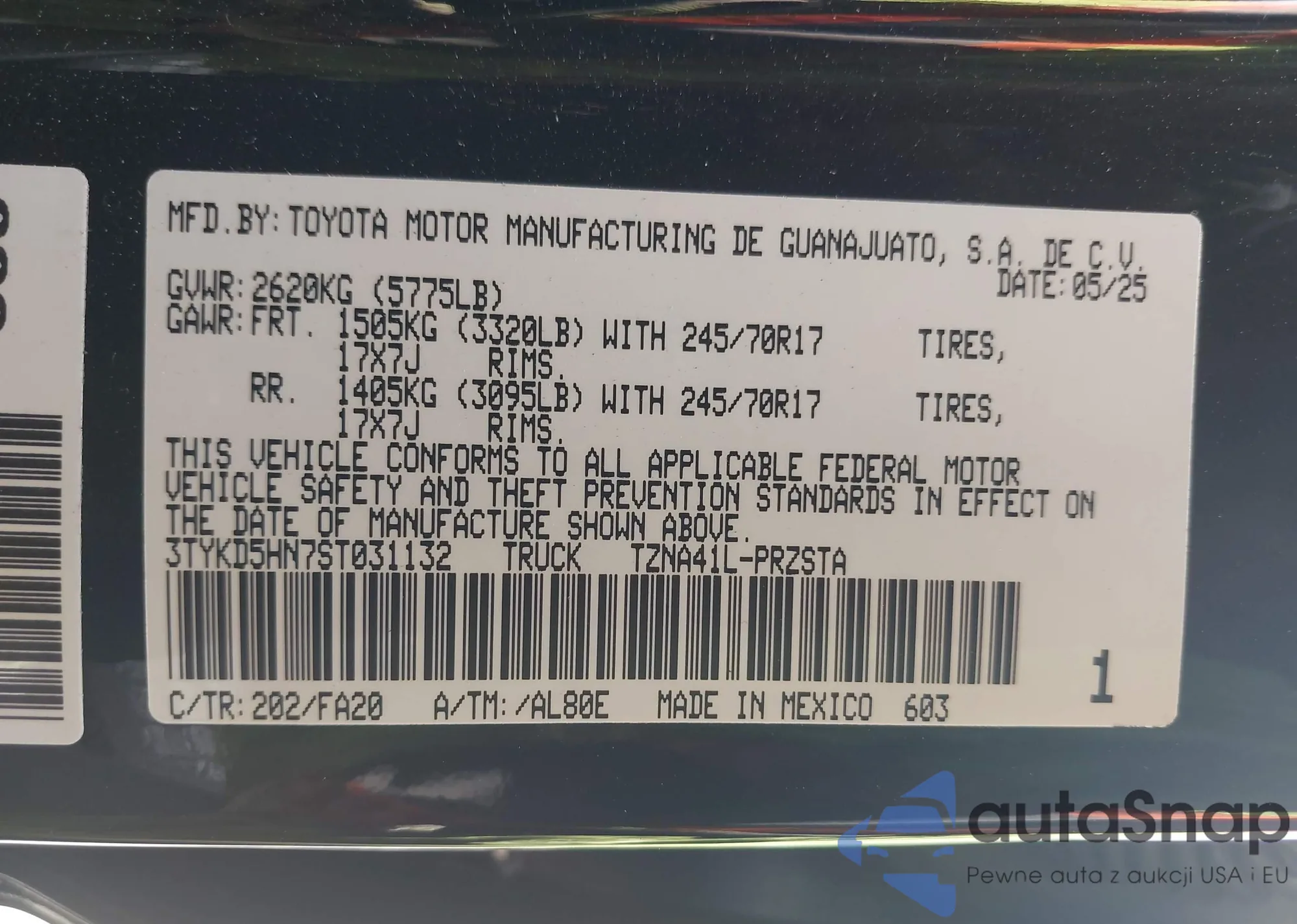 VIN: 3TYKD5HN7ST031132