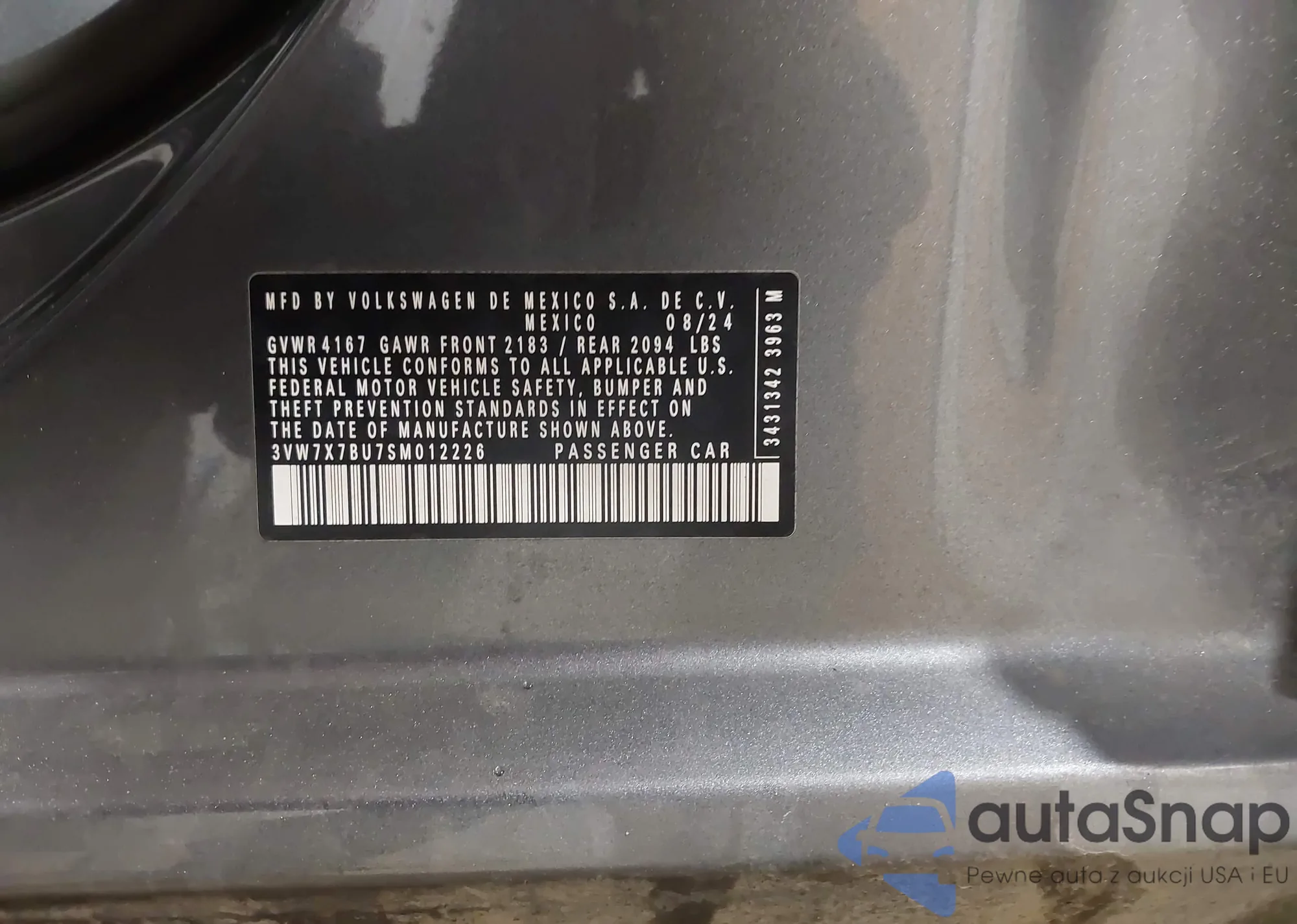 • VIN: 3VW7X7BU7SM012226