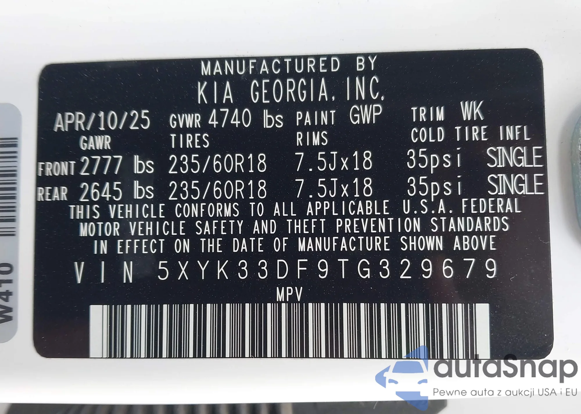 • VIN: 5XYK33DF9TG329679