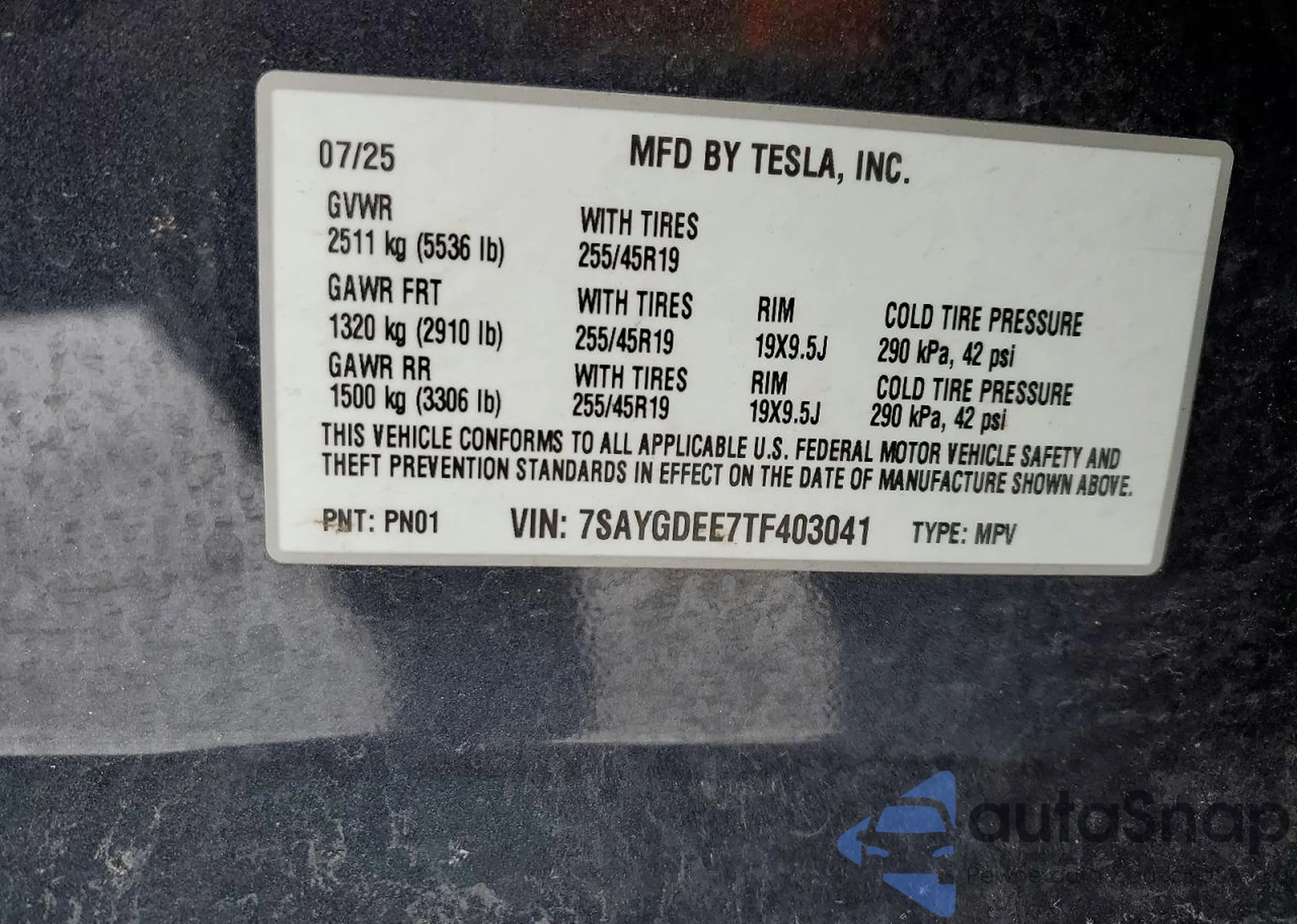 VIN: 7SAYGDEE7TF403041