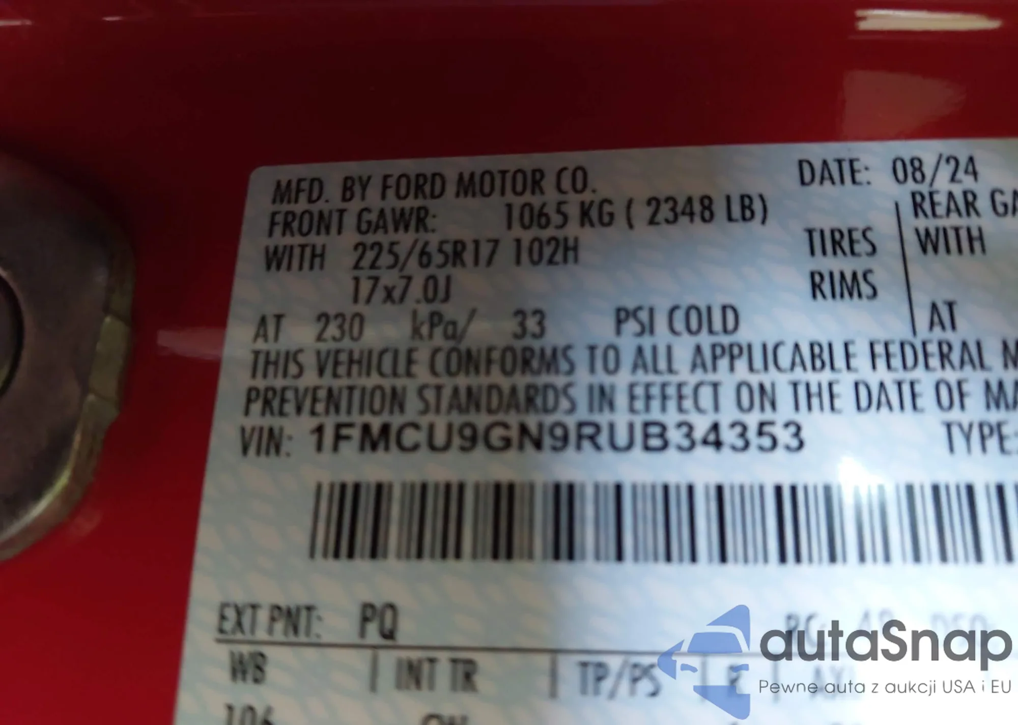 • VIN 1FMCU9GN9RUB34353