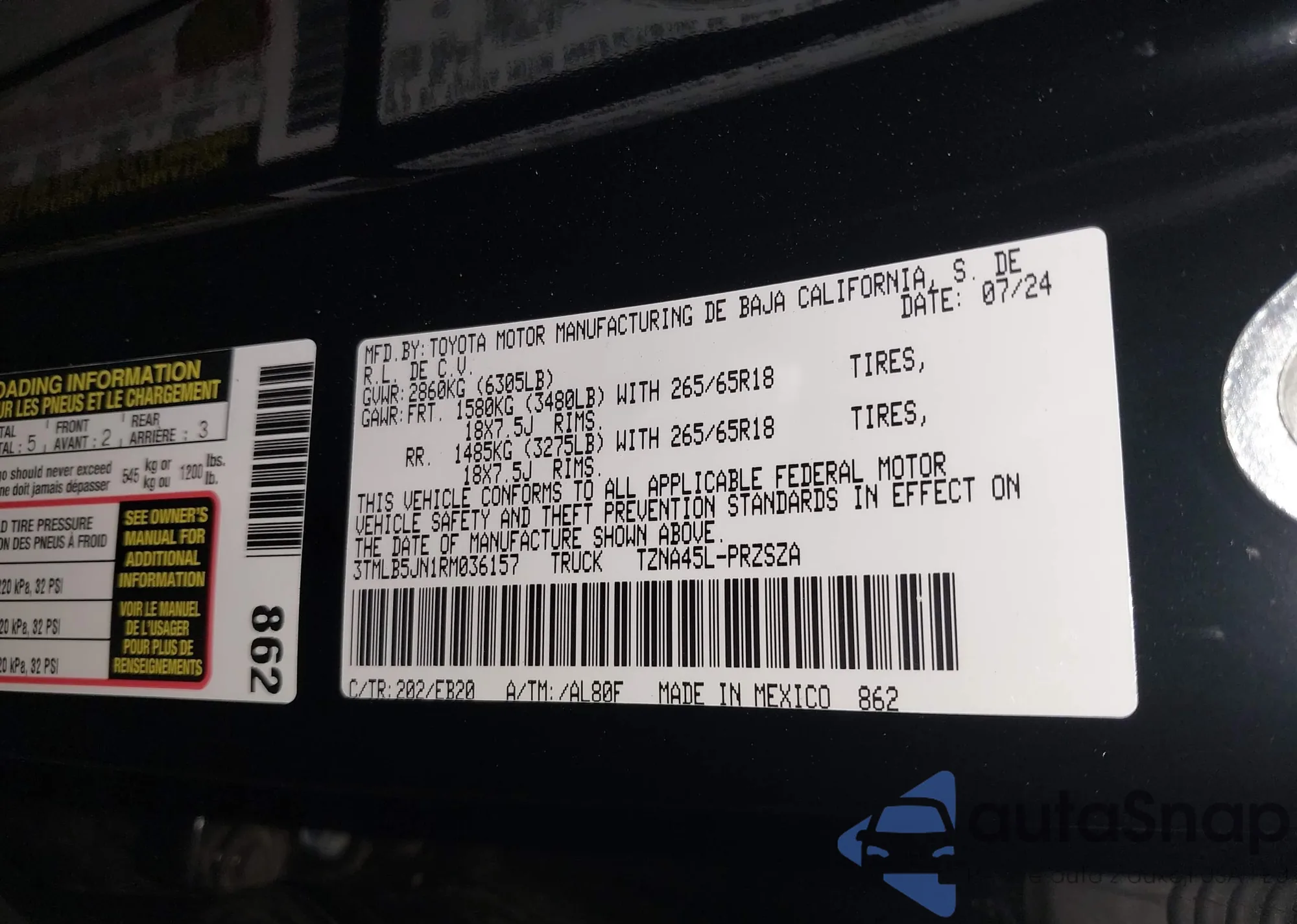 • VIN 3TMLB5JN1RM036157