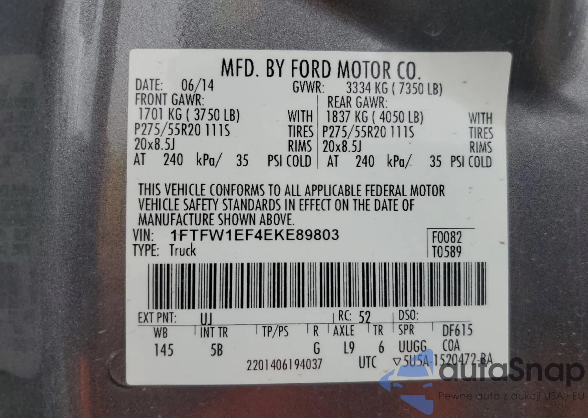 LOT: 84755185 VIN: 1FTFW1EF4EKE89803