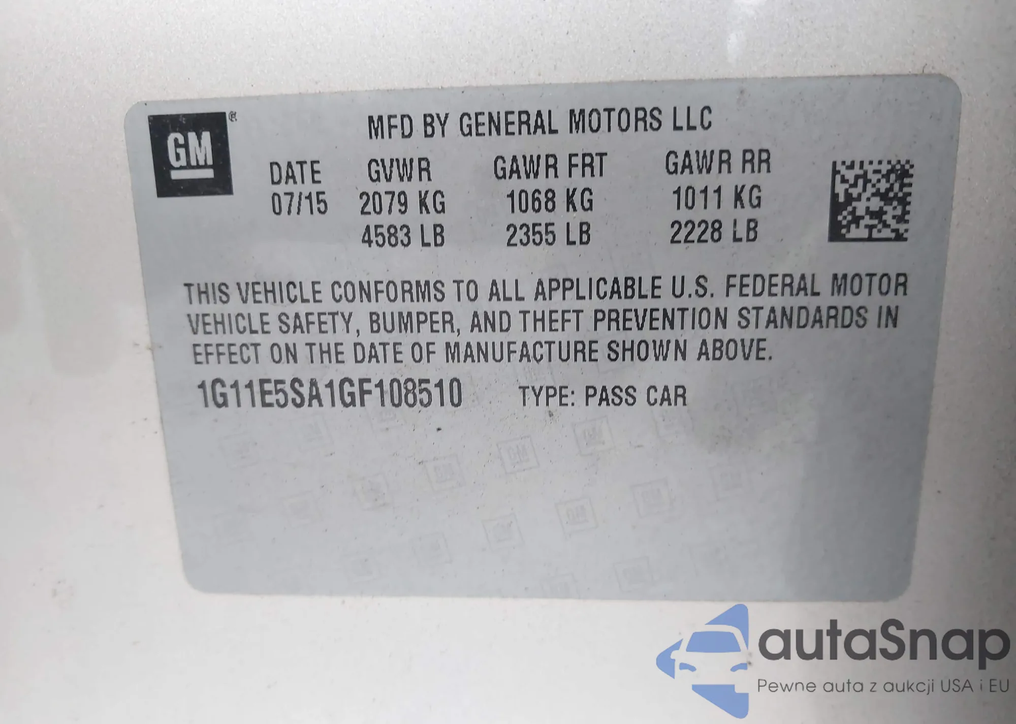 • VIN 1G11E5SA1GF108510