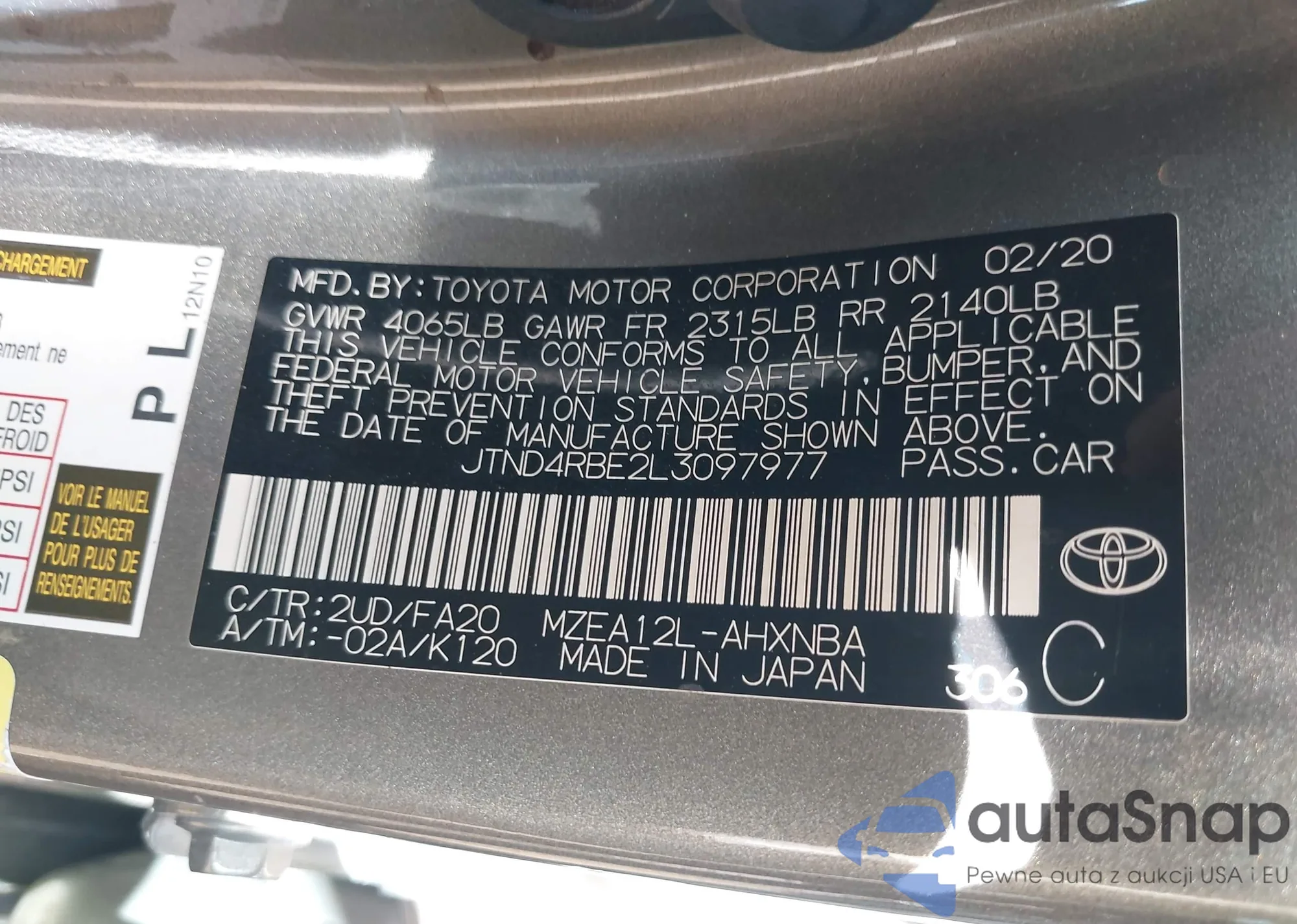 LOT: 44314786 VIN: JTND4RBE2L3097977