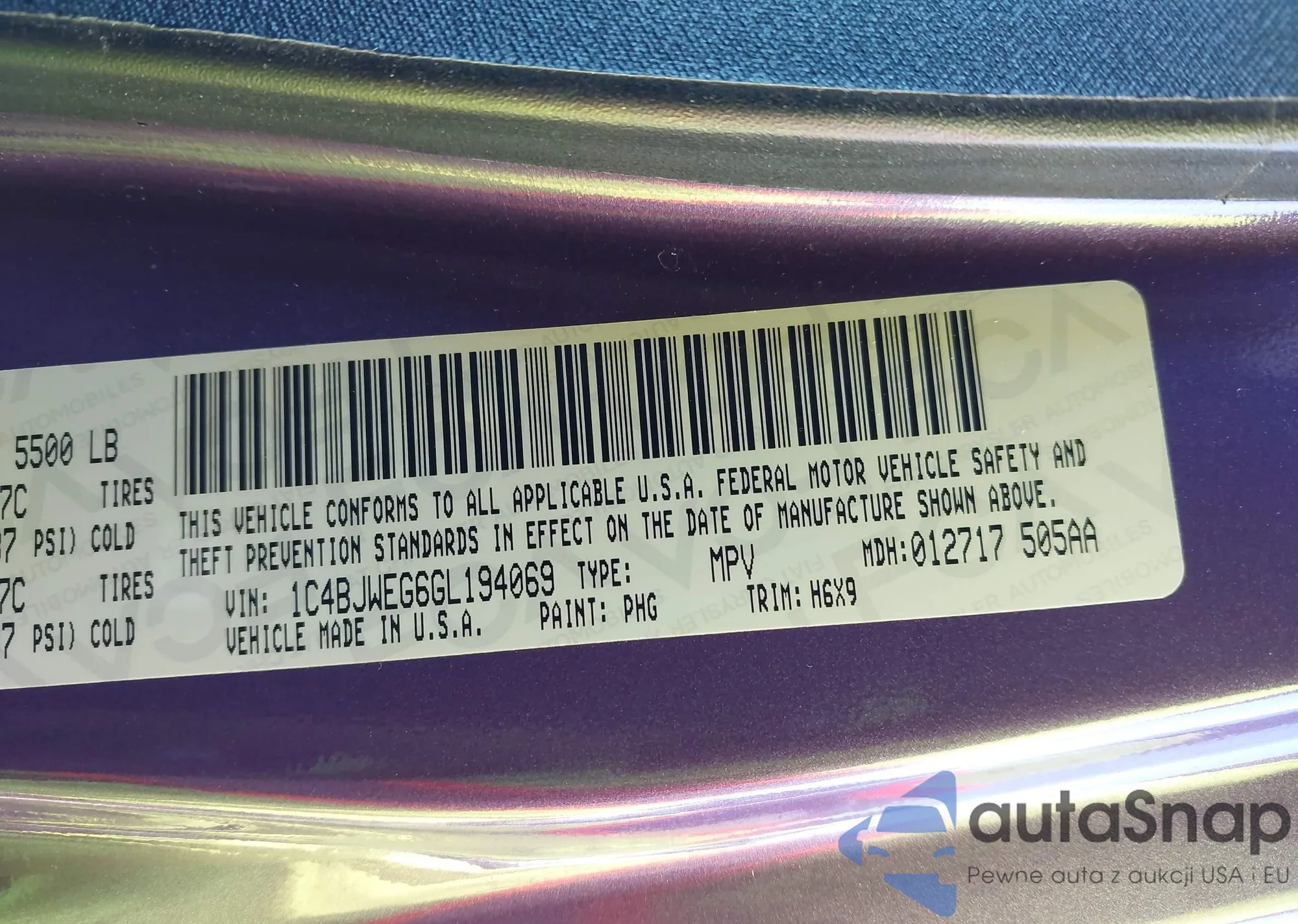 • VIN 1C4BJWEG6GL194069