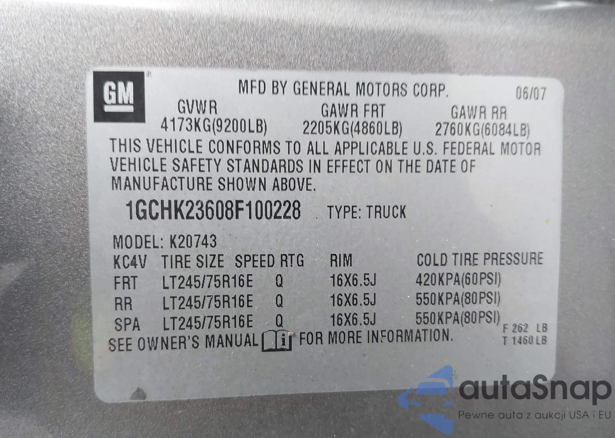 LOT: 44407872 VIN: 1GCHK23608F100228
