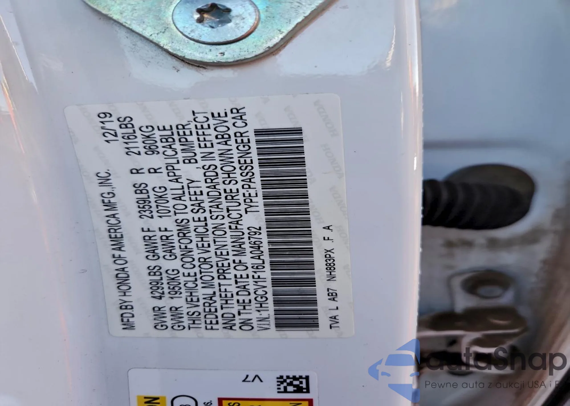 LOT: 96962745 VIN: 1HGCV1F16LA046792