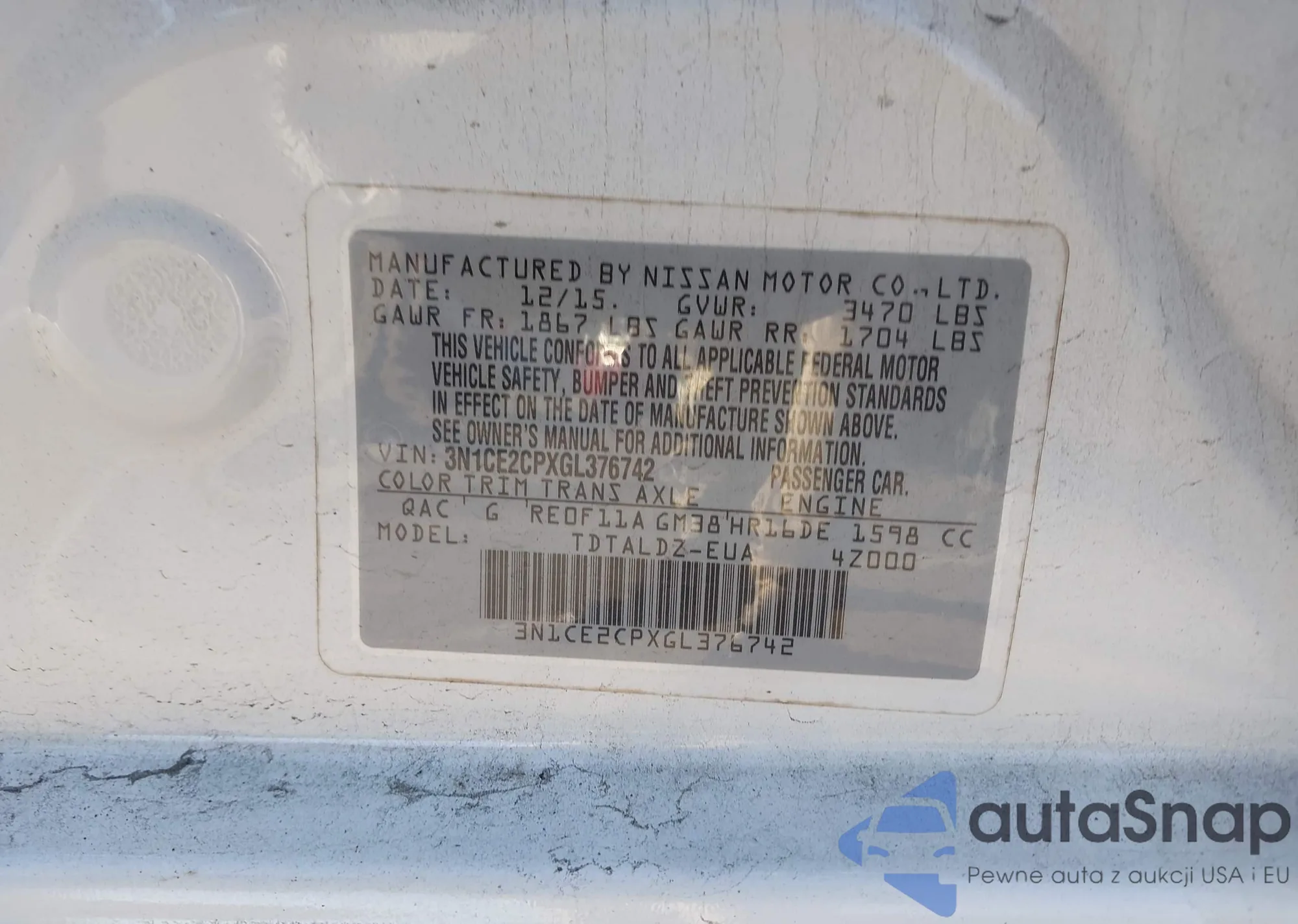 • VIN 3N1CE2CPXGL376742