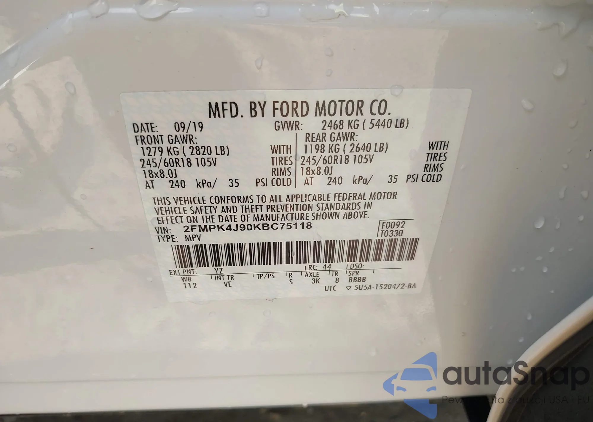 • VIN 2FMPK4J90KBC75118