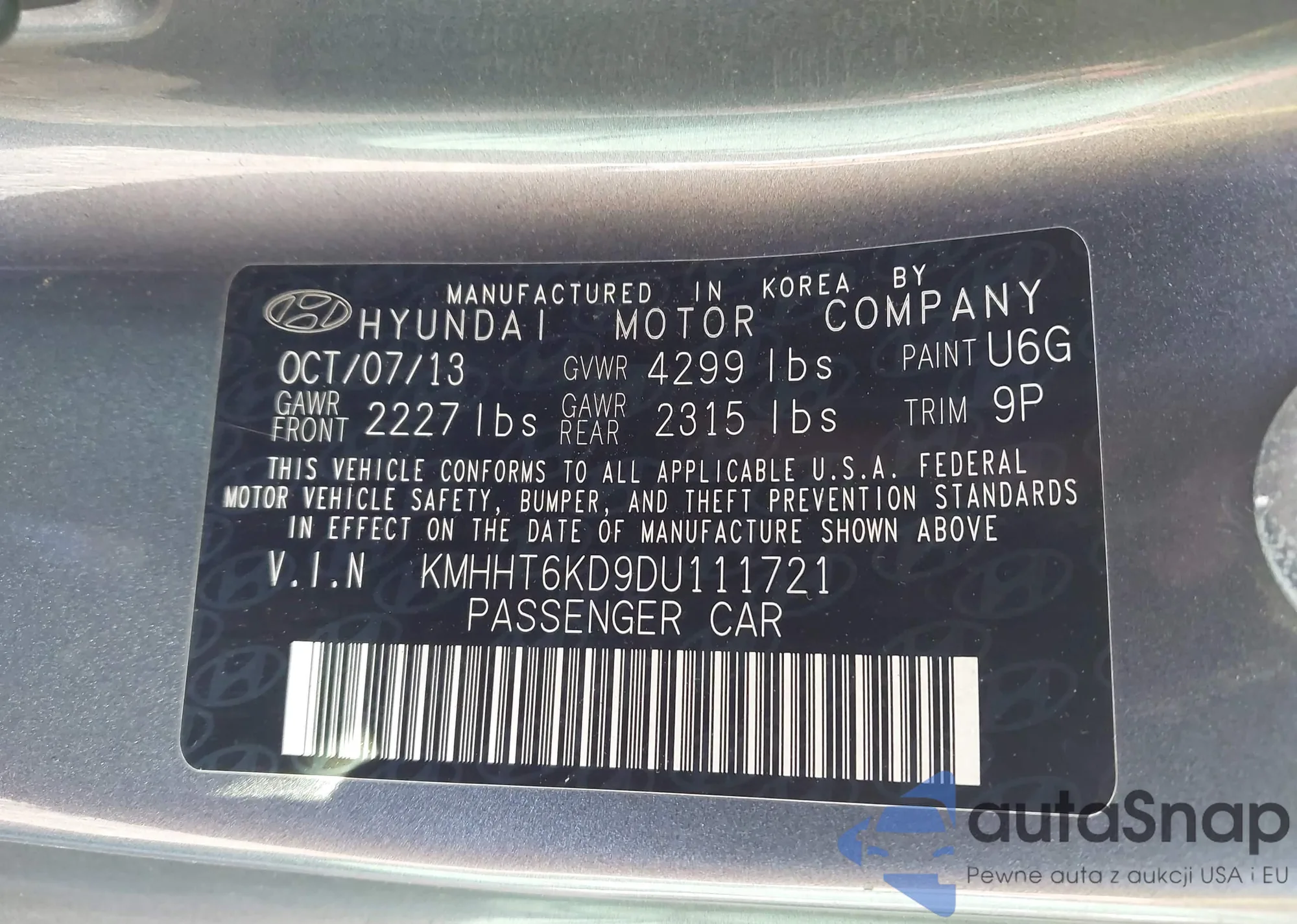 • VIN KMHHT6KD9DU111721
