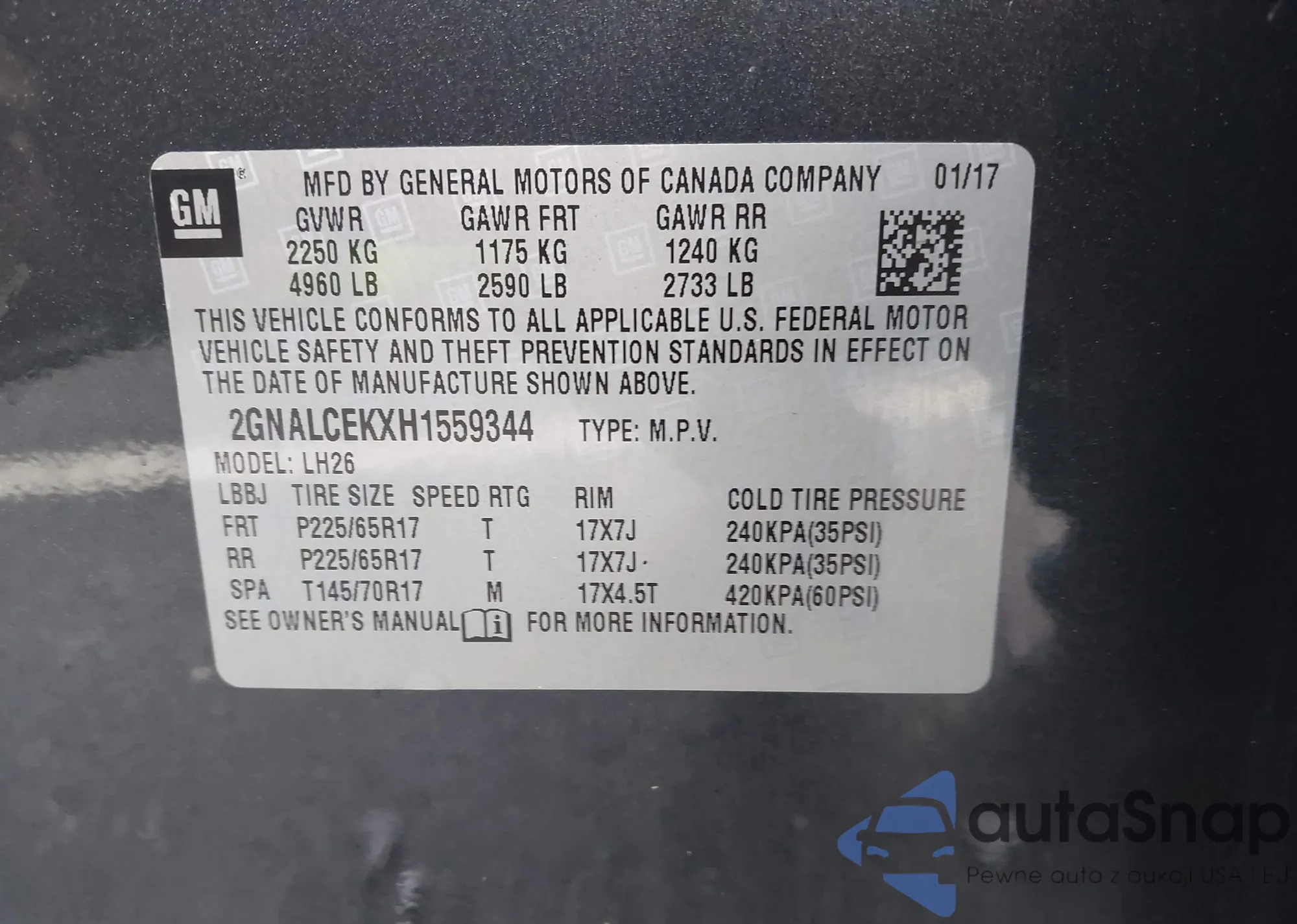 • VIN 2GNALCEKXH1559344