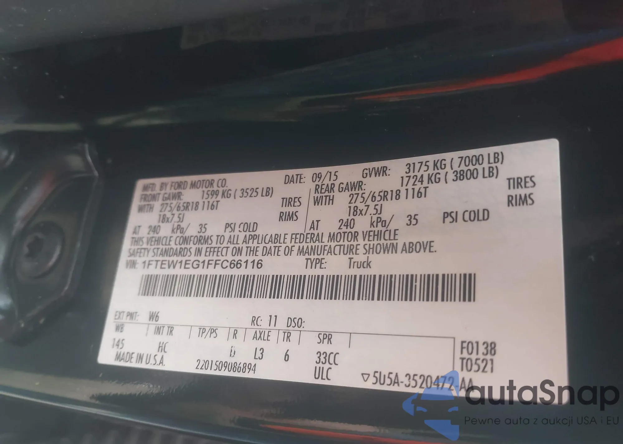 • VIN 1FTEW1EG1FFC66116