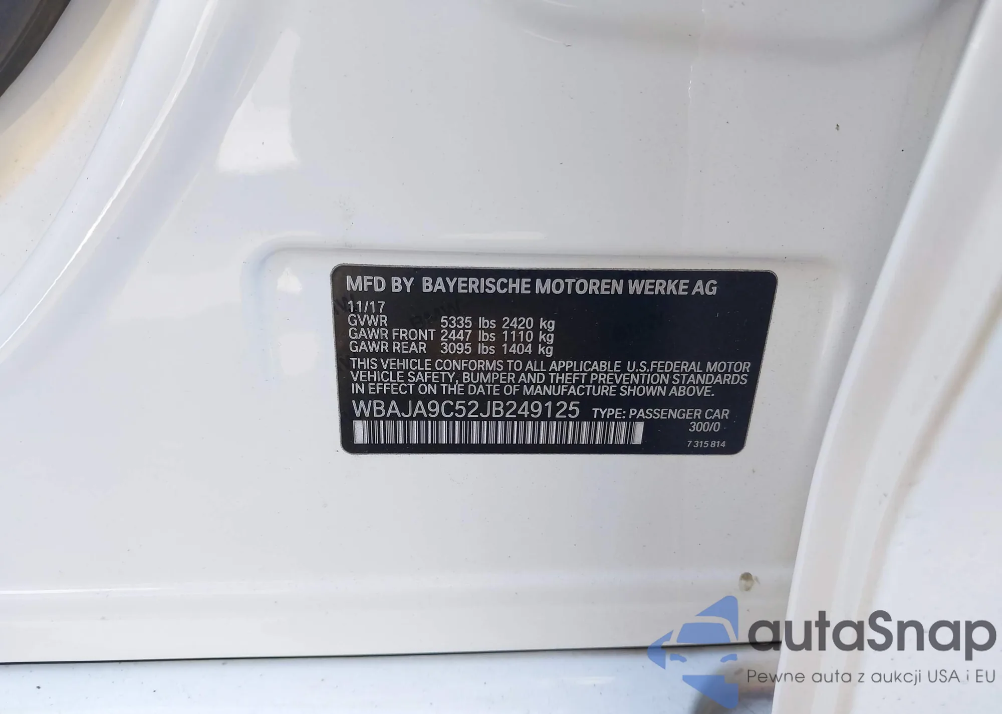 • VIN WBAJA9C52JB249125
