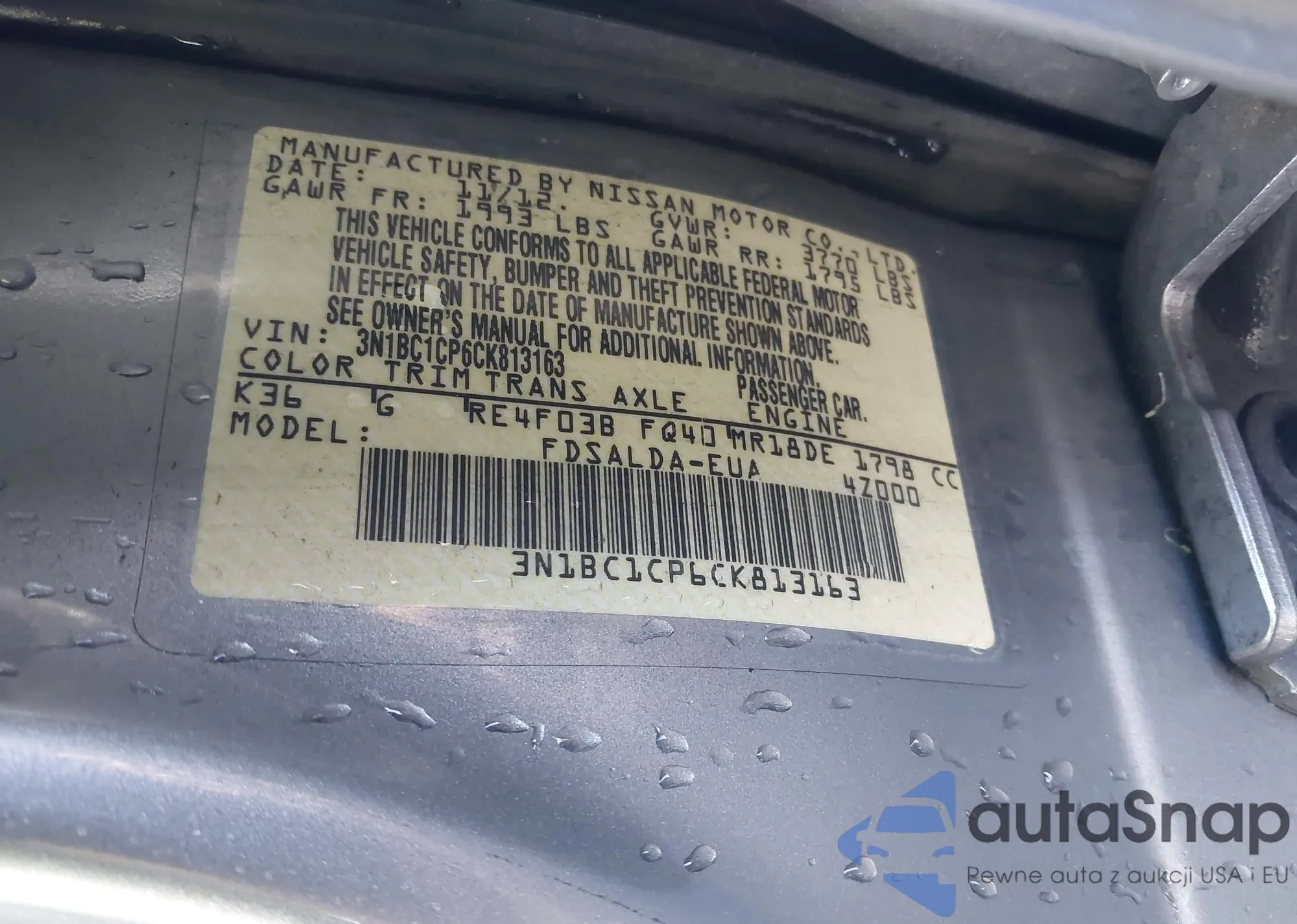 • VIN 3N1BC1CP6CK813163
