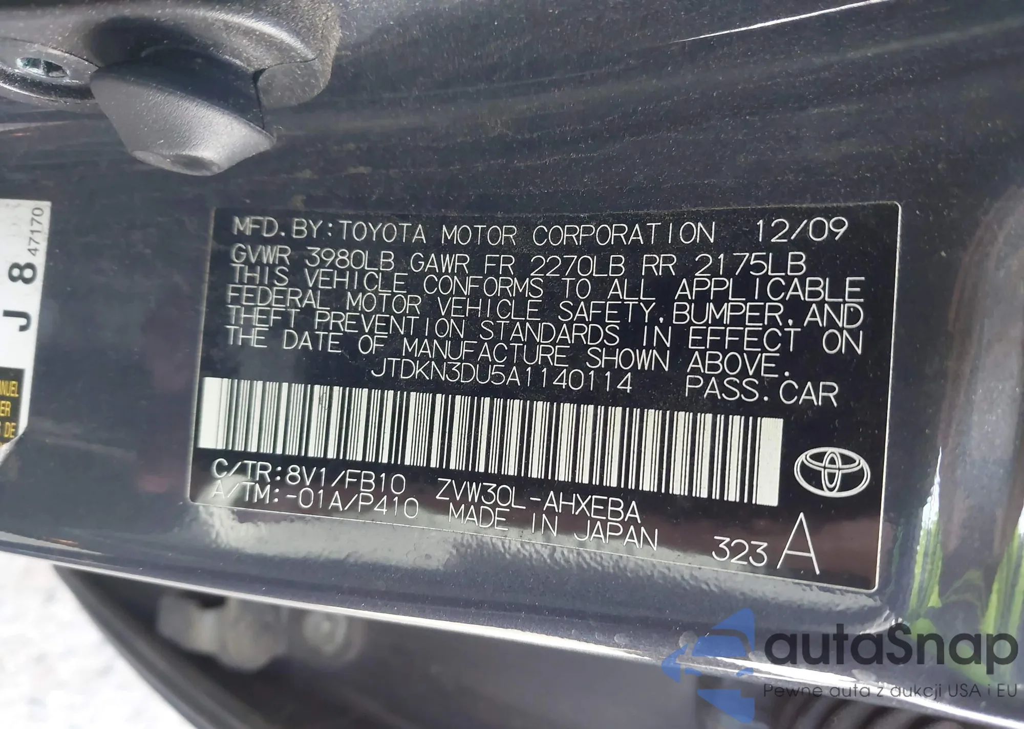 • VIN JTDKN3DU5A1140114