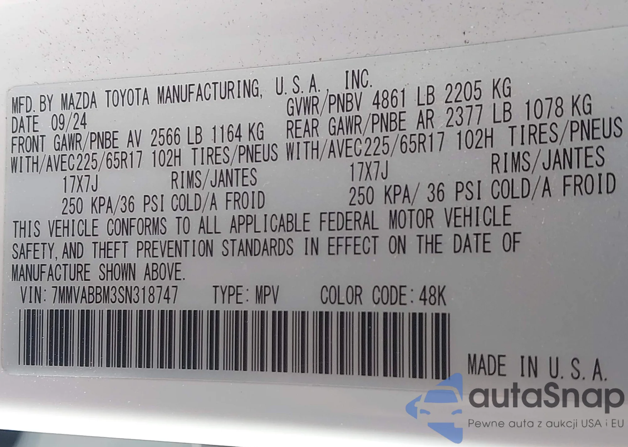 • VIN 7MMVABBM3SN318747