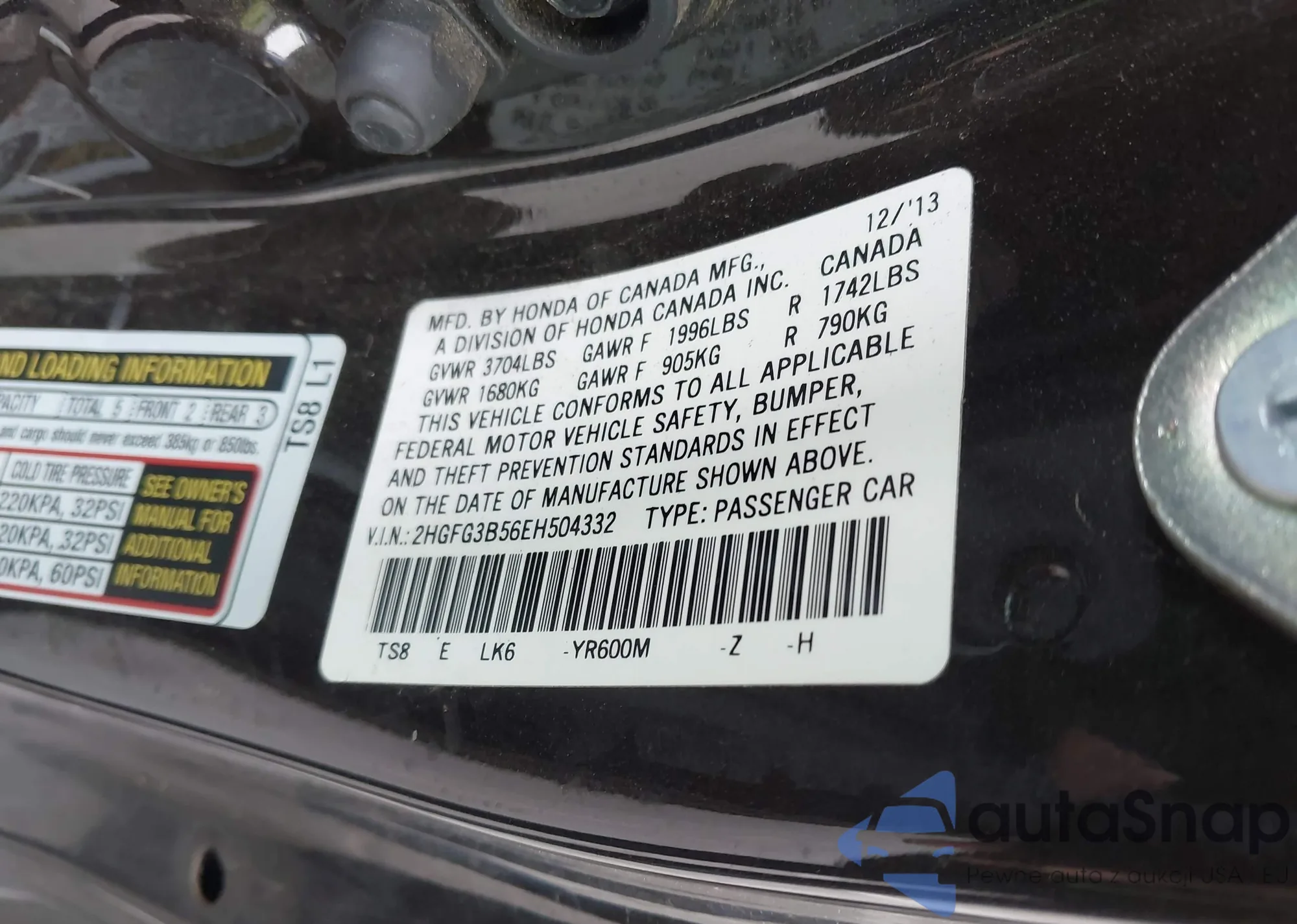 • VIN 2HGFG3B56EH504332