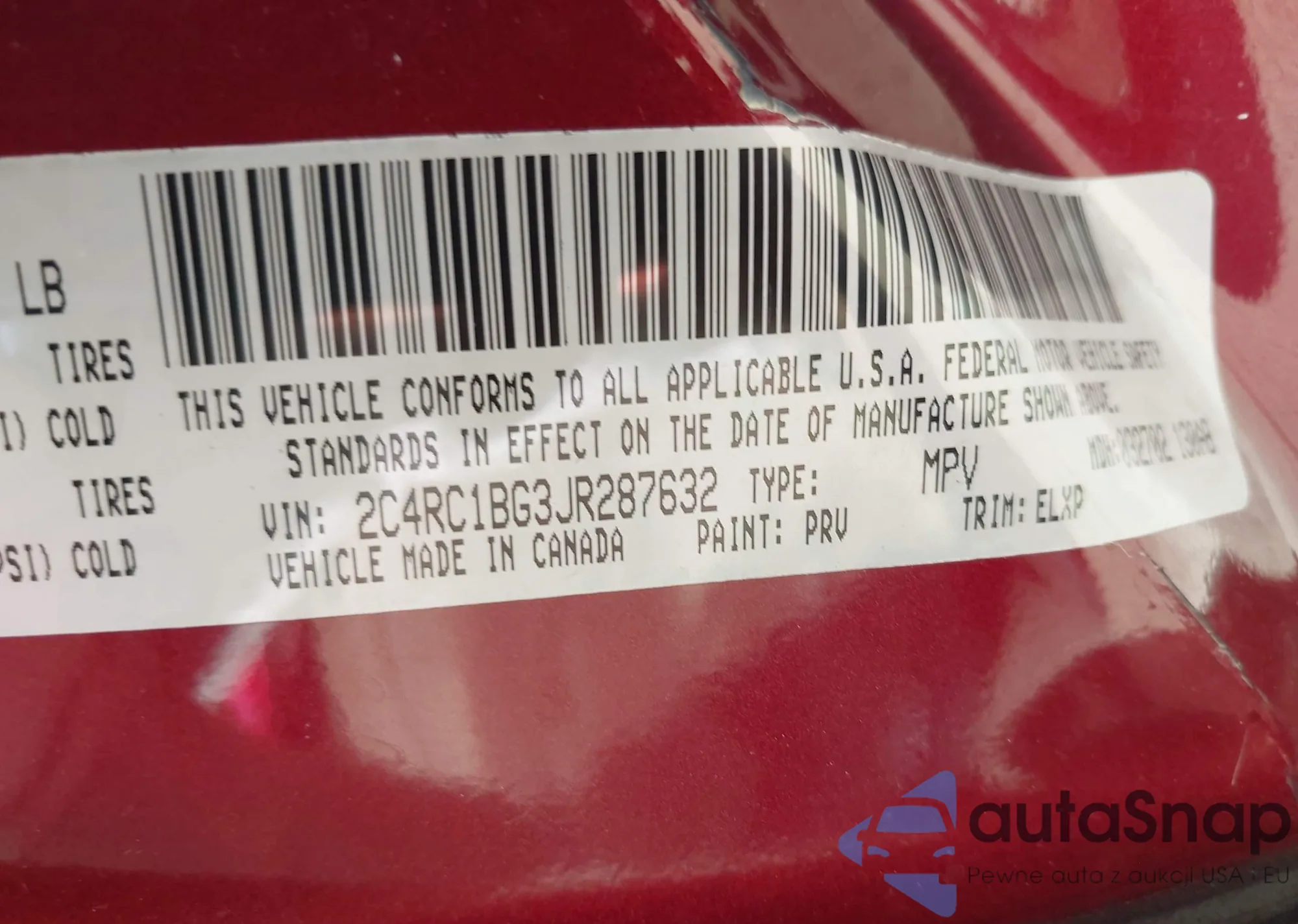 • VIN 2C4RC1BG3JR287632