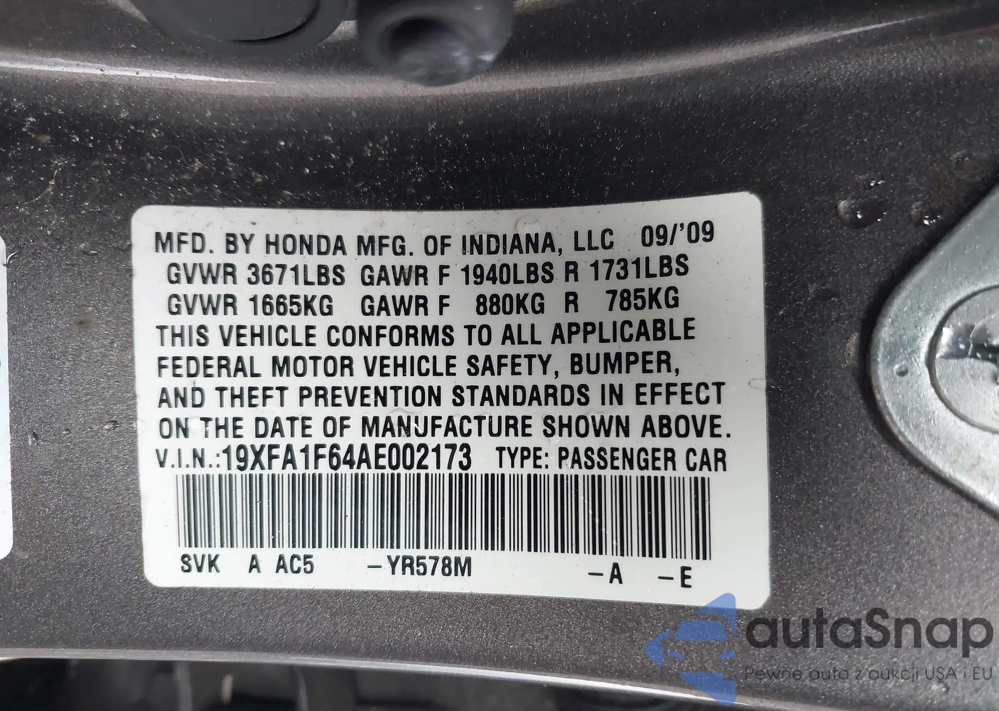 • VIN 19XFA1F64AE002173