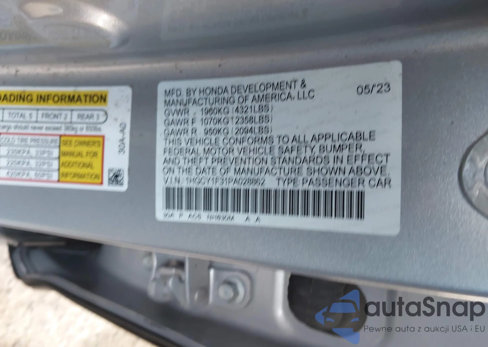 LOT: 44180466 VIN: 1HGCY1F31PA028862