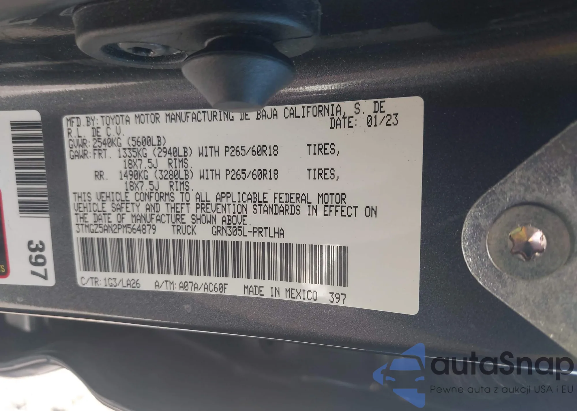 • VIN 3TMGZ5AN2PM564879