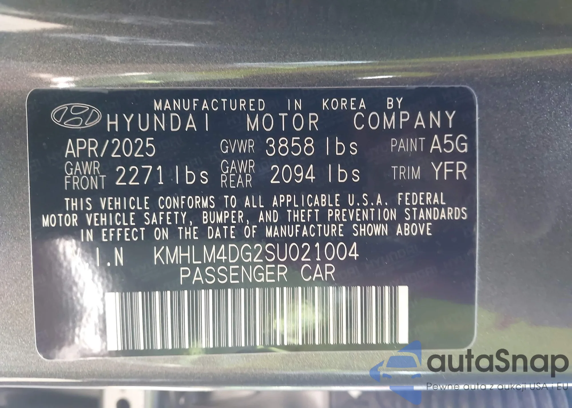 LOT: 43411156 VIN: KMHLM4DG2SU021004
