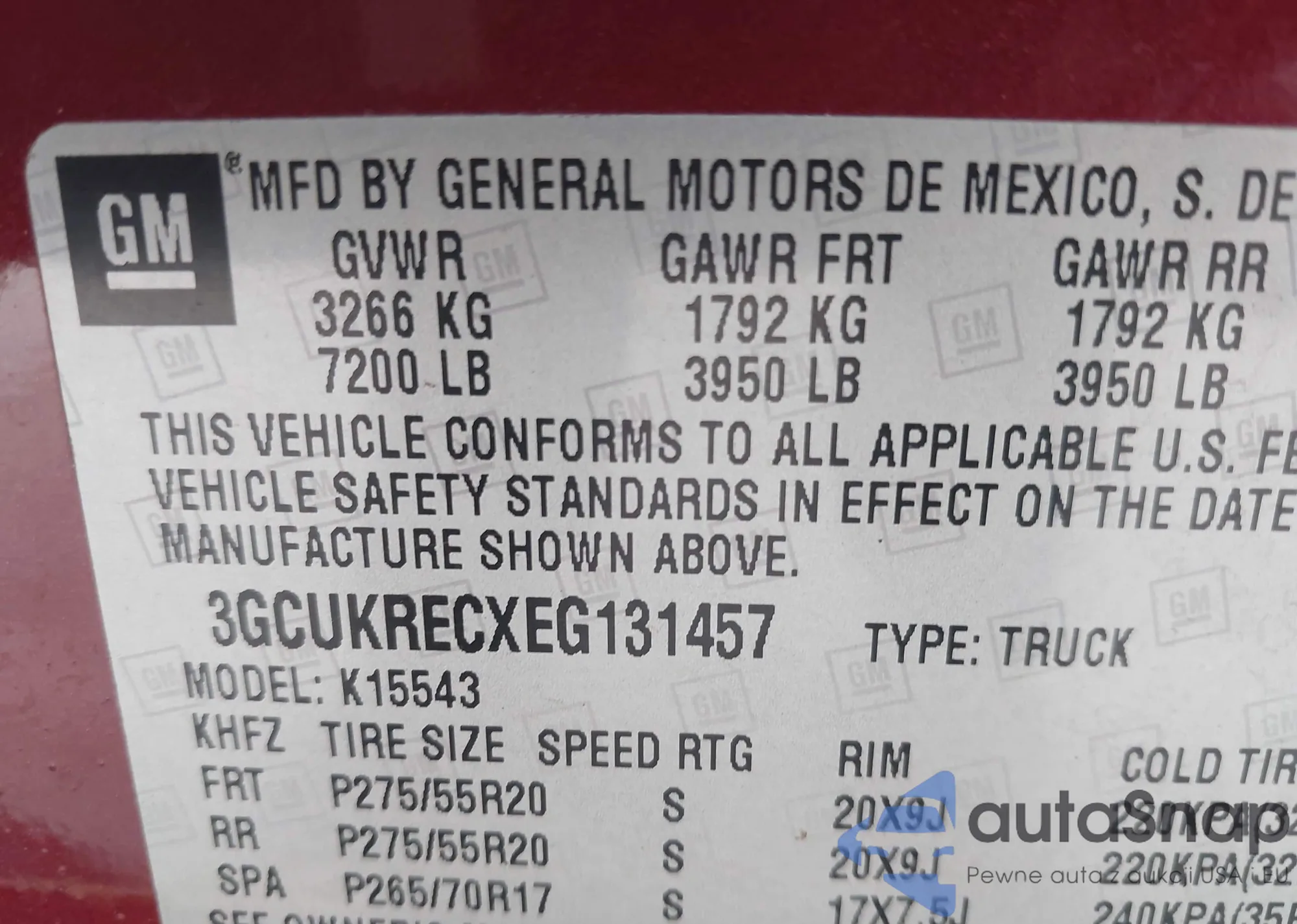 • VIN 3GCUKRECXEG131457
