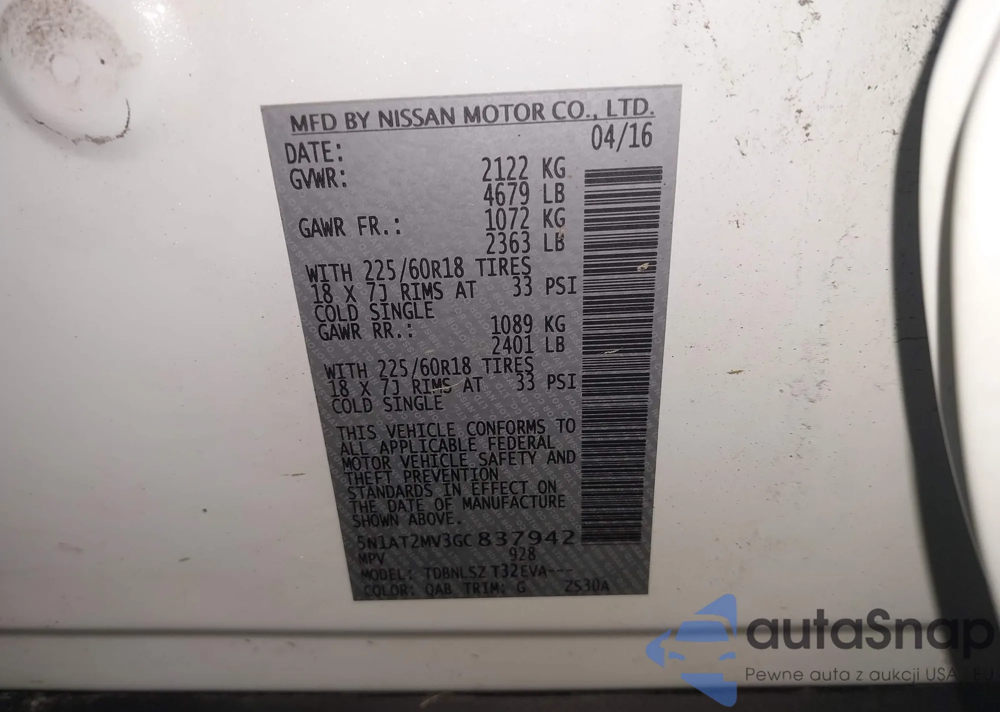 • VIN 5N1AT2MV3GC837942