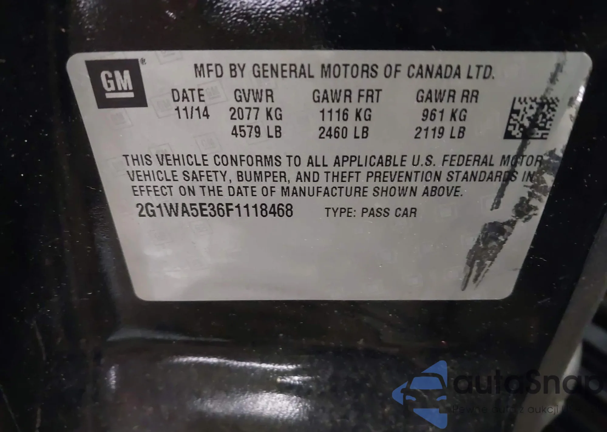 • VIN 2G1WA5E36F1118468
