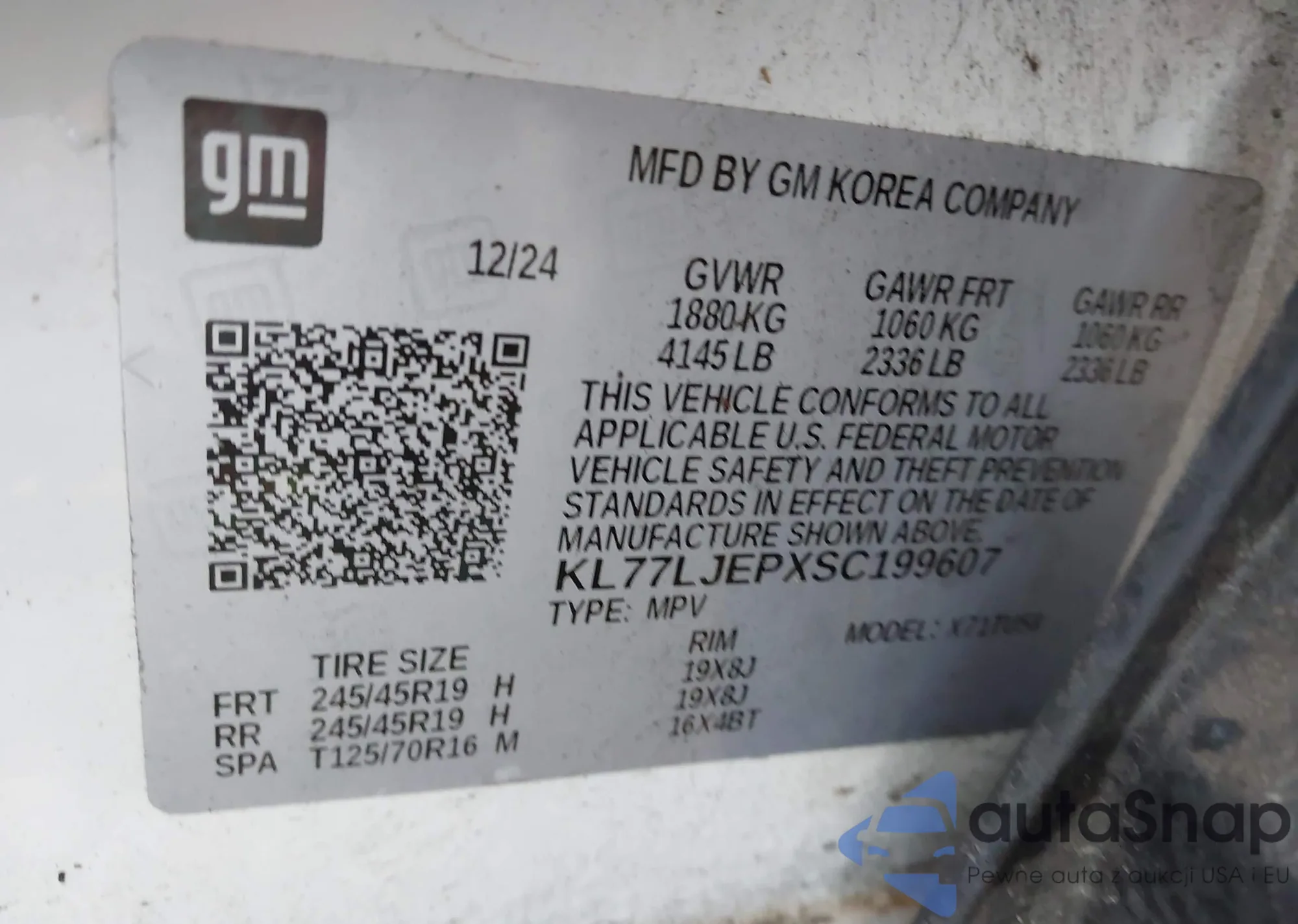 LOT: 43769447 VIN: KL77LJEPXSC199607