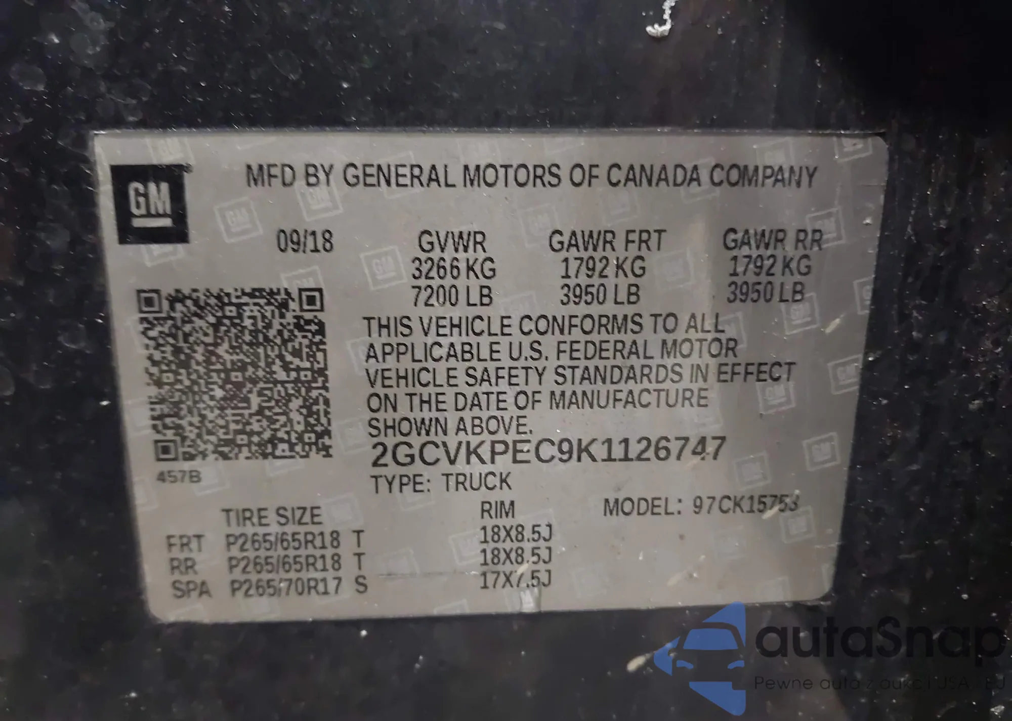 • VIN 2GCVKPEC9K1126747