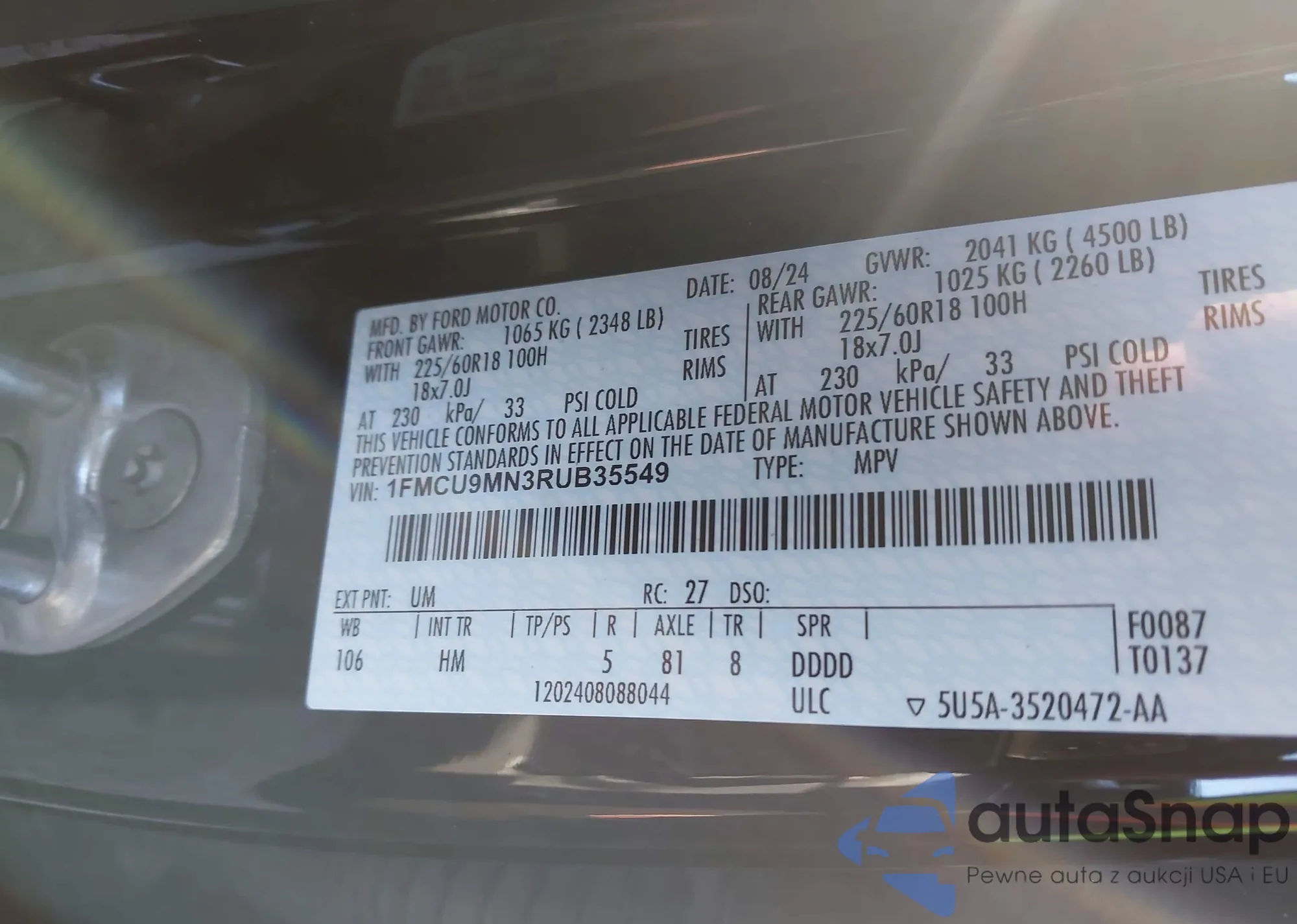 • VIN 1FMCU9MN3RUB35549