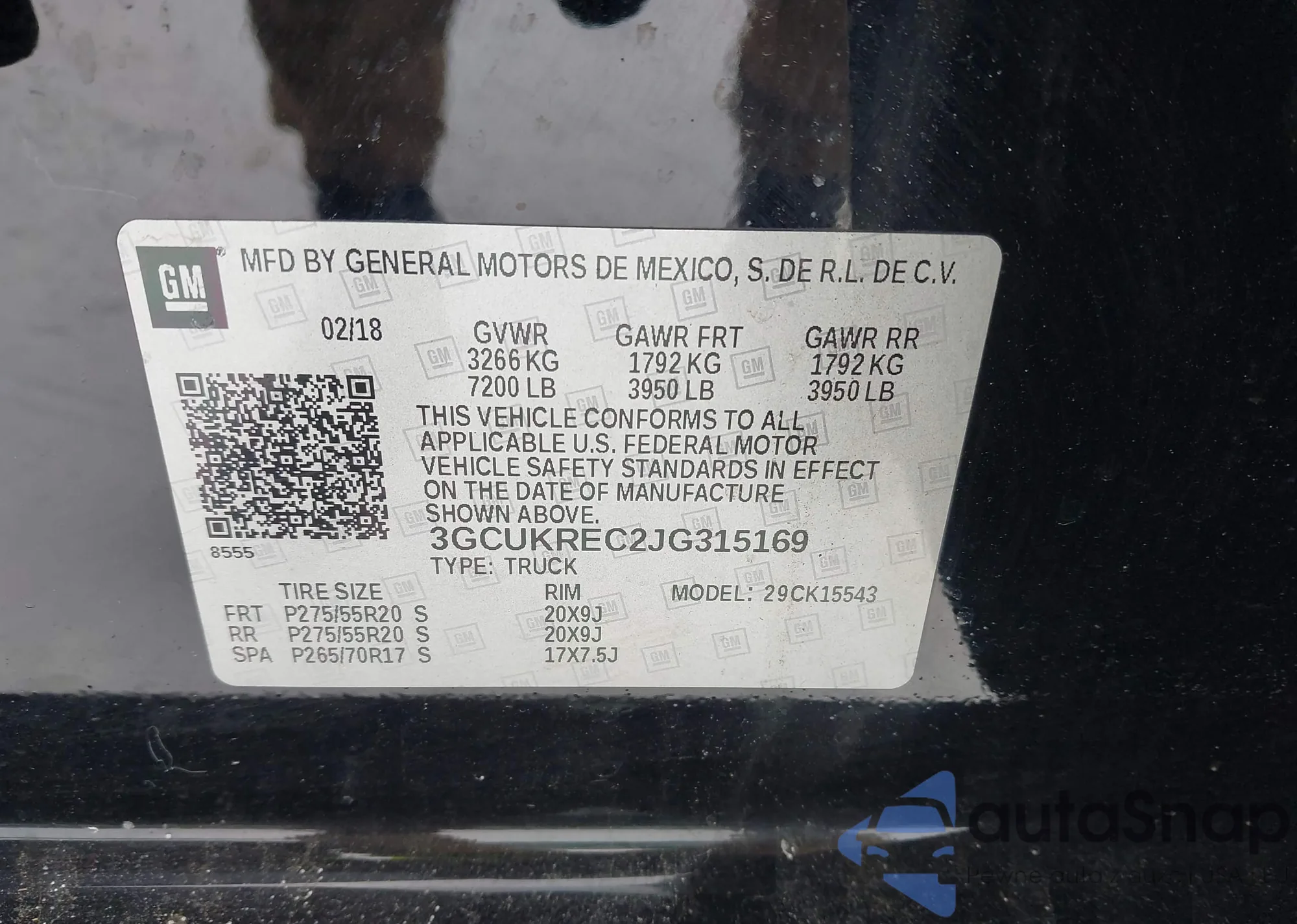 • VIN 3GCUKREC2JG315169