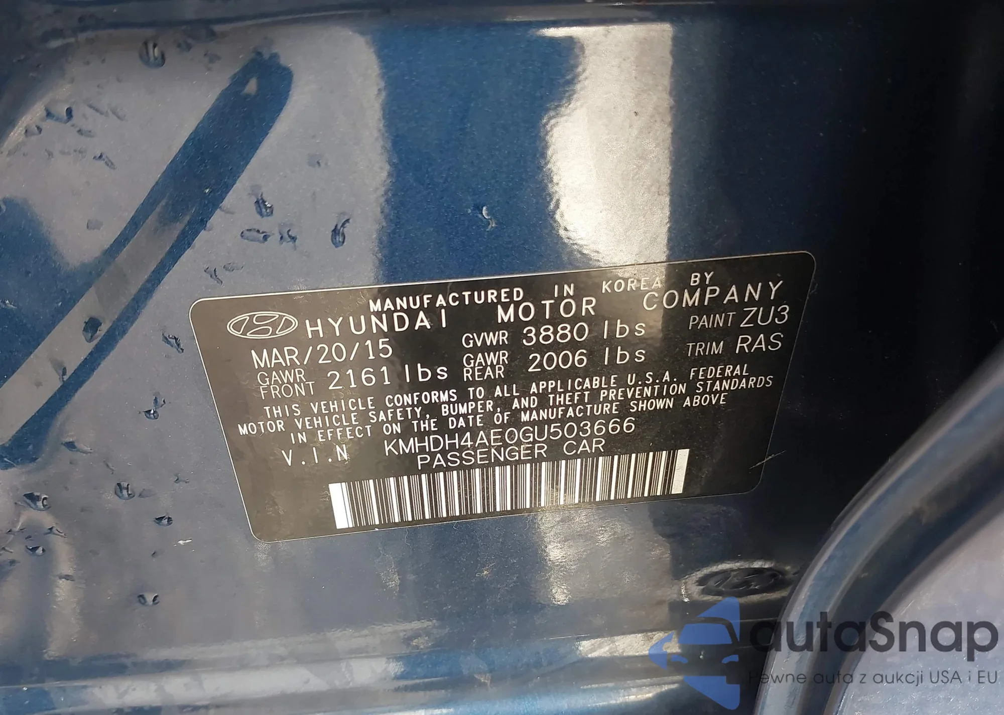 LOT: 44242484 VIN: KMHDH4AE0GU503666