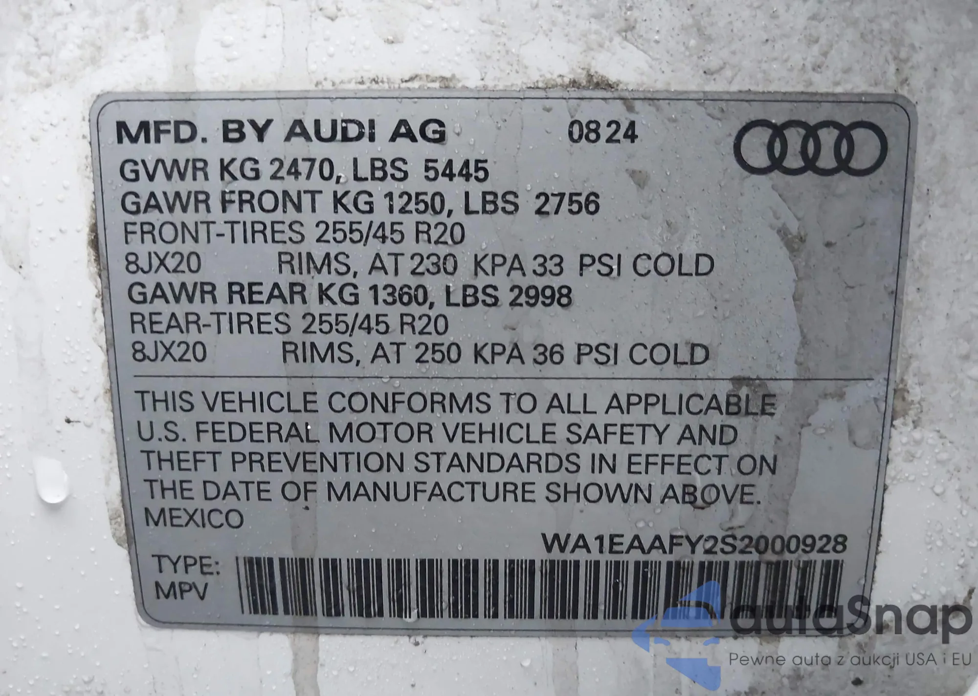 LOT: 44141357 VIN: WA1EAAFY2S2000928