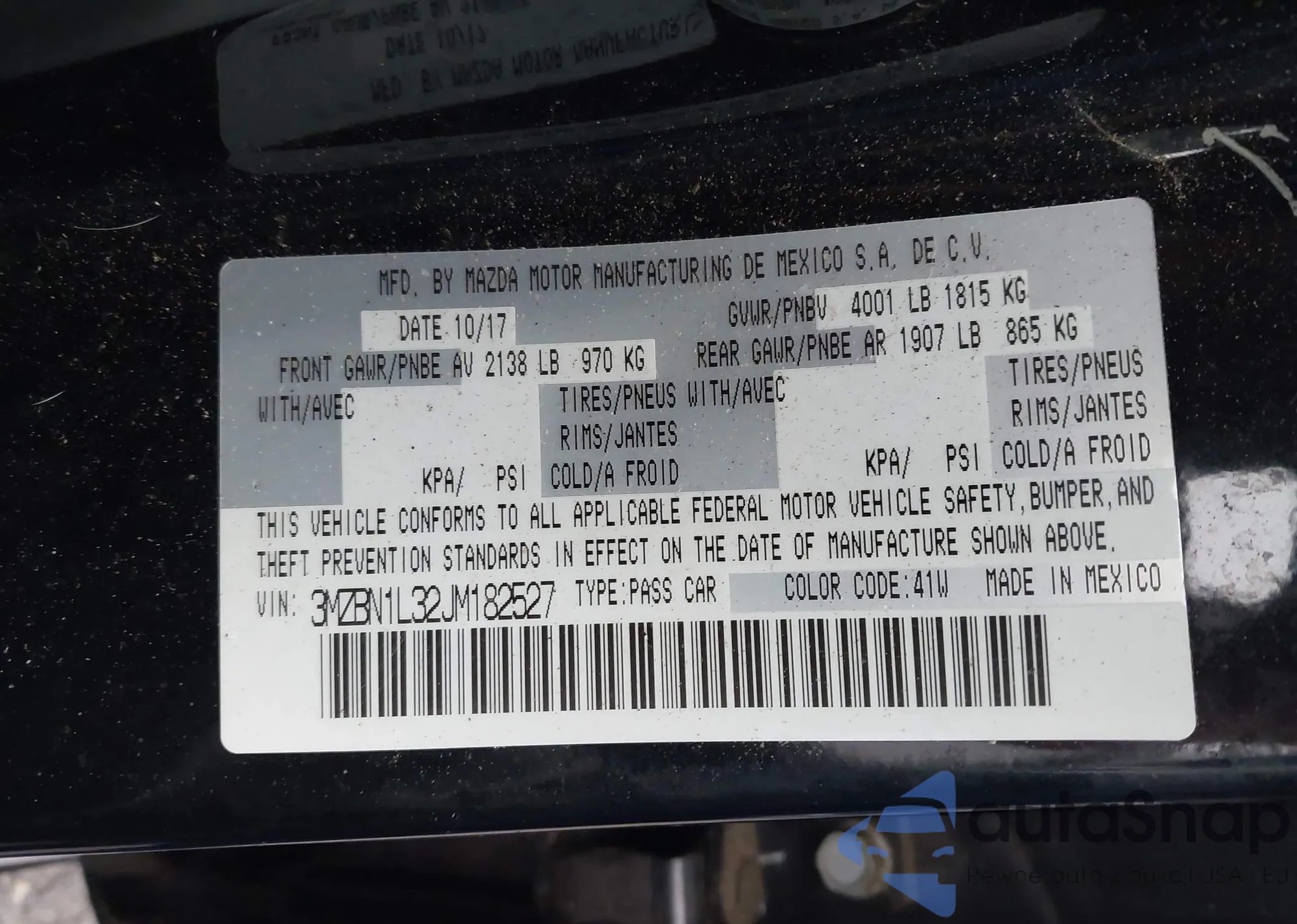LOT: 44154582 VIN: 3MZBN1L32JM182527
