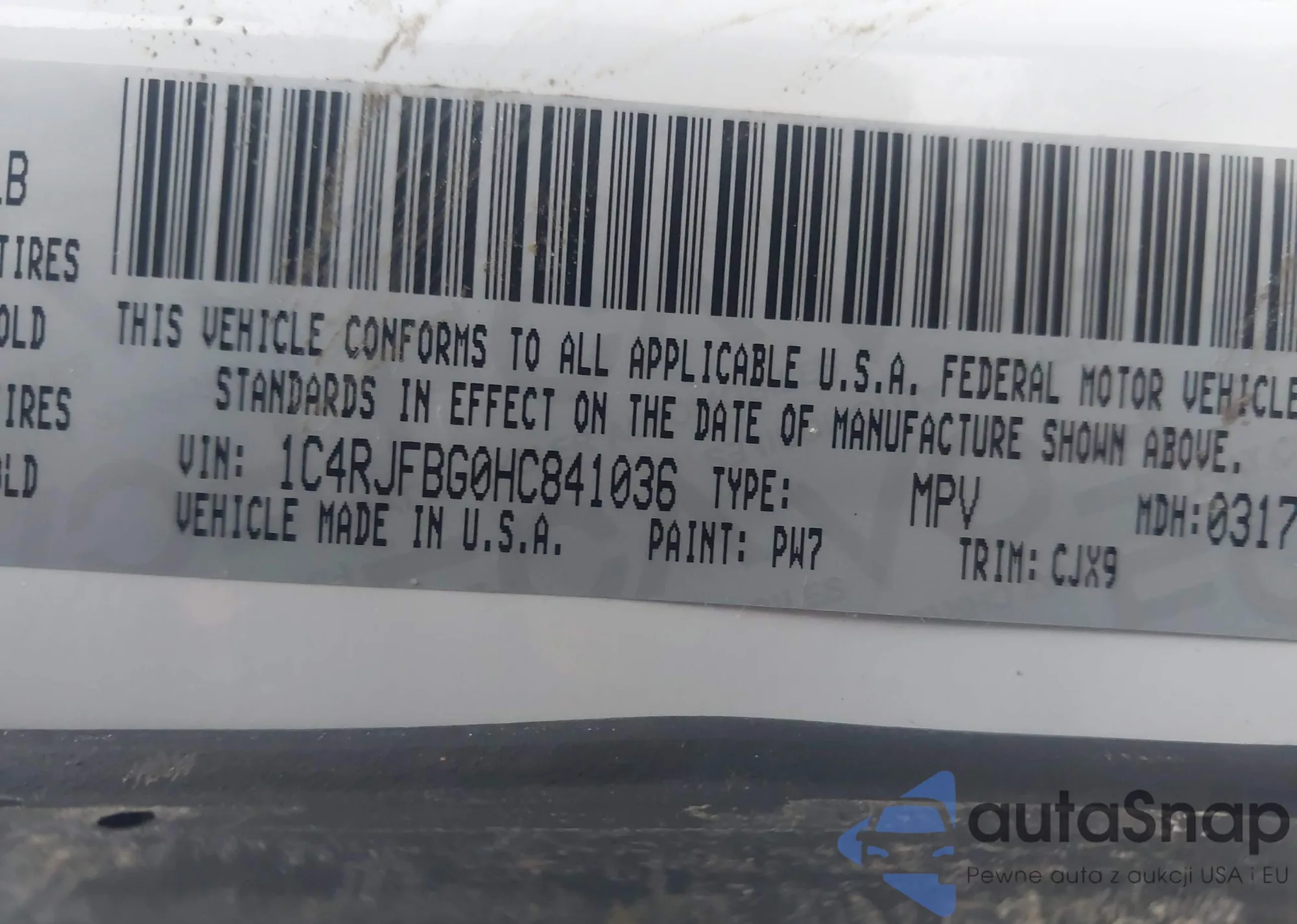 • VIN 1C4RJFBG0HC841036