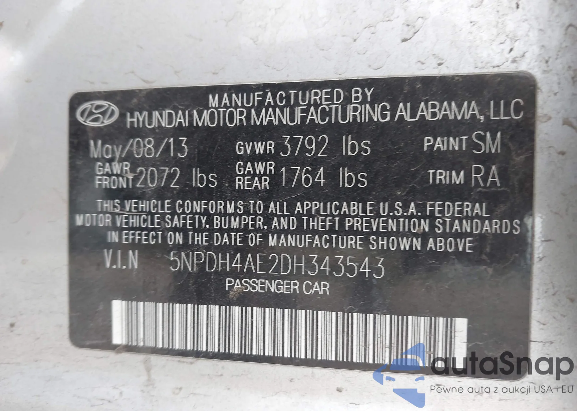 • VIN 5NPDH4AE2DH343543