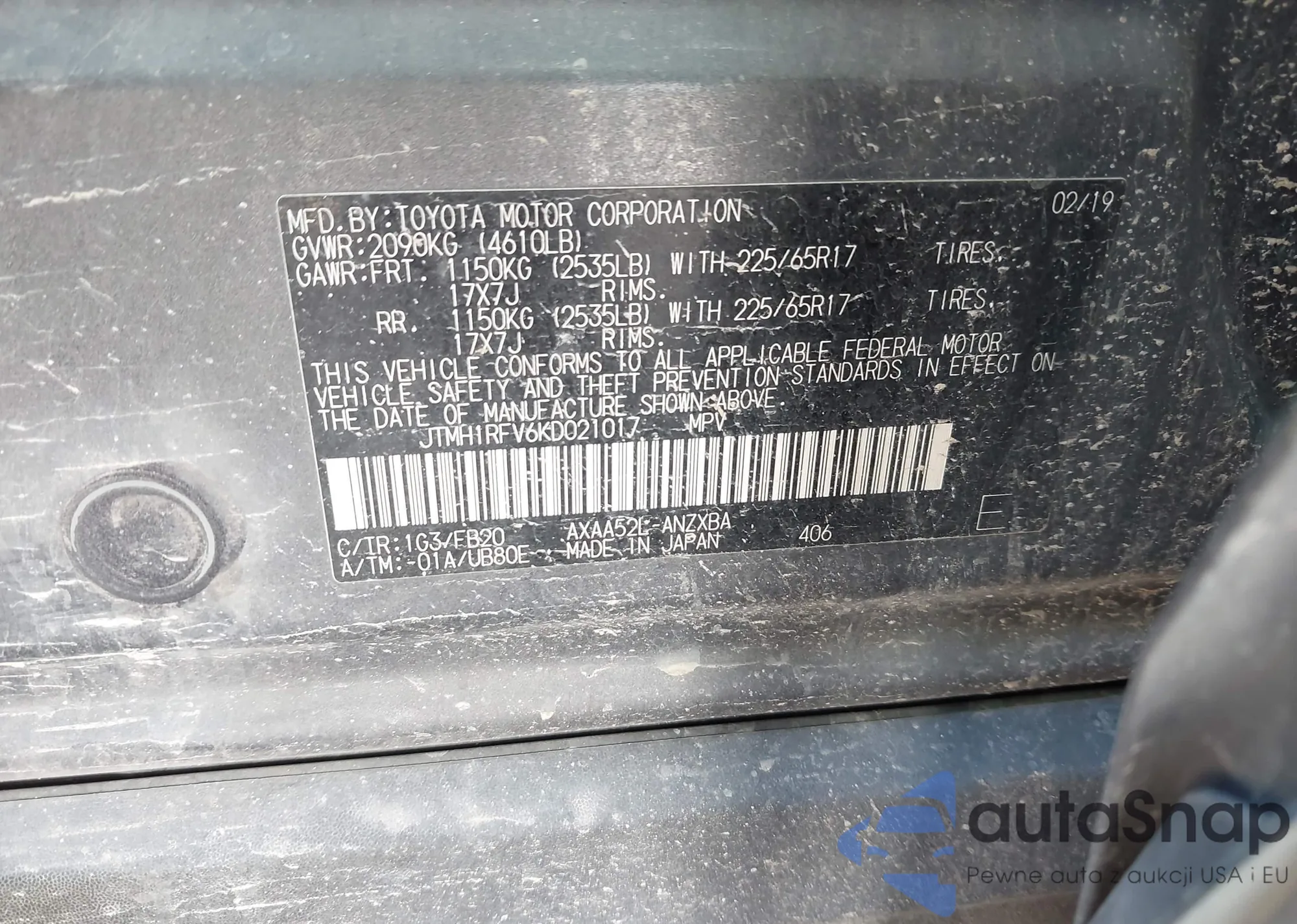 • VIN JTMH1RFV6KD021017