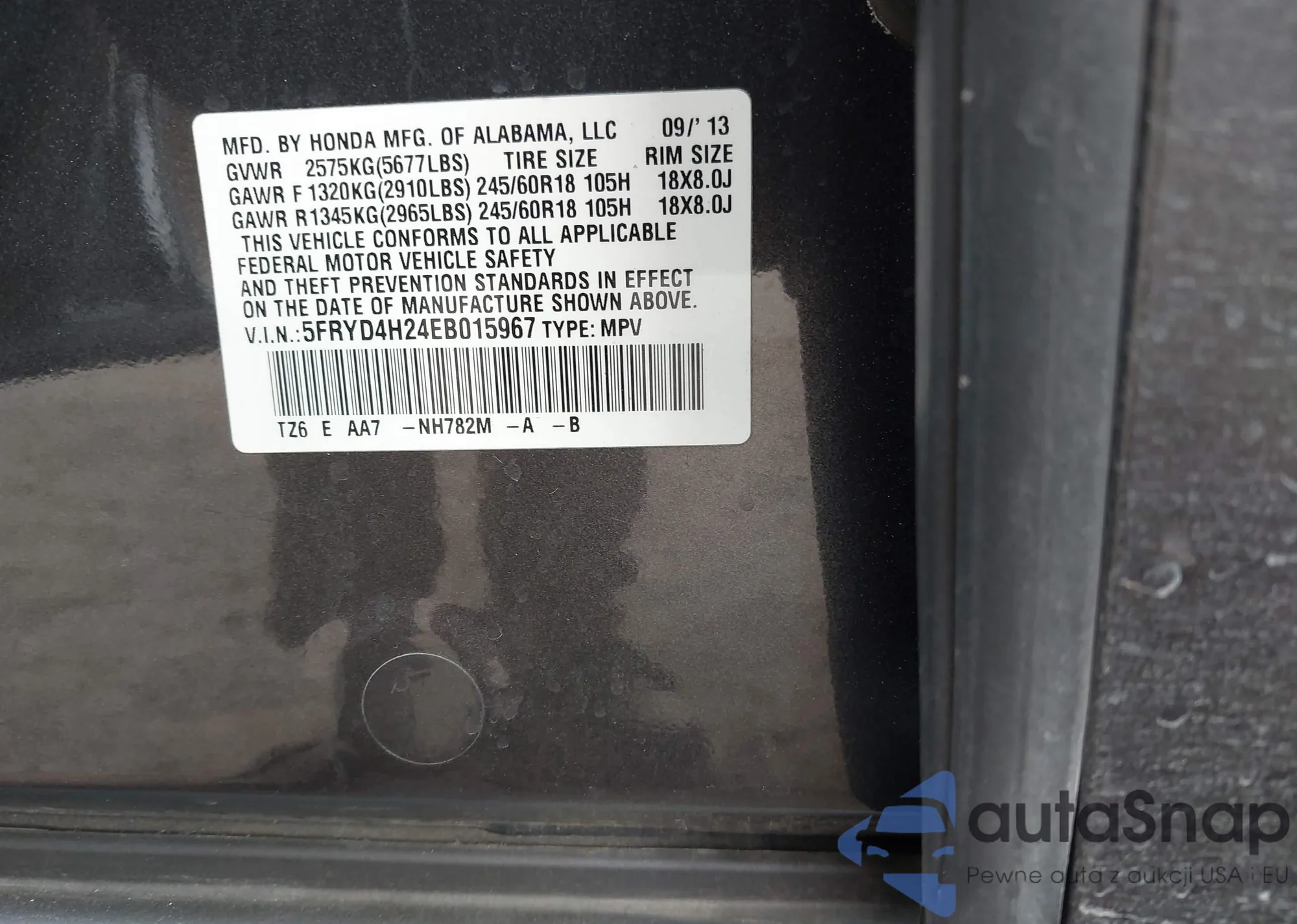 • VIN 5FRYD4H24EB015967