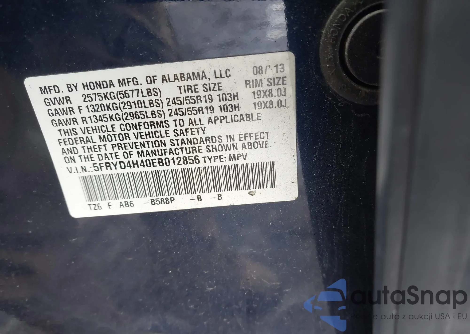 • VIN 5FRYD4H43EB004072