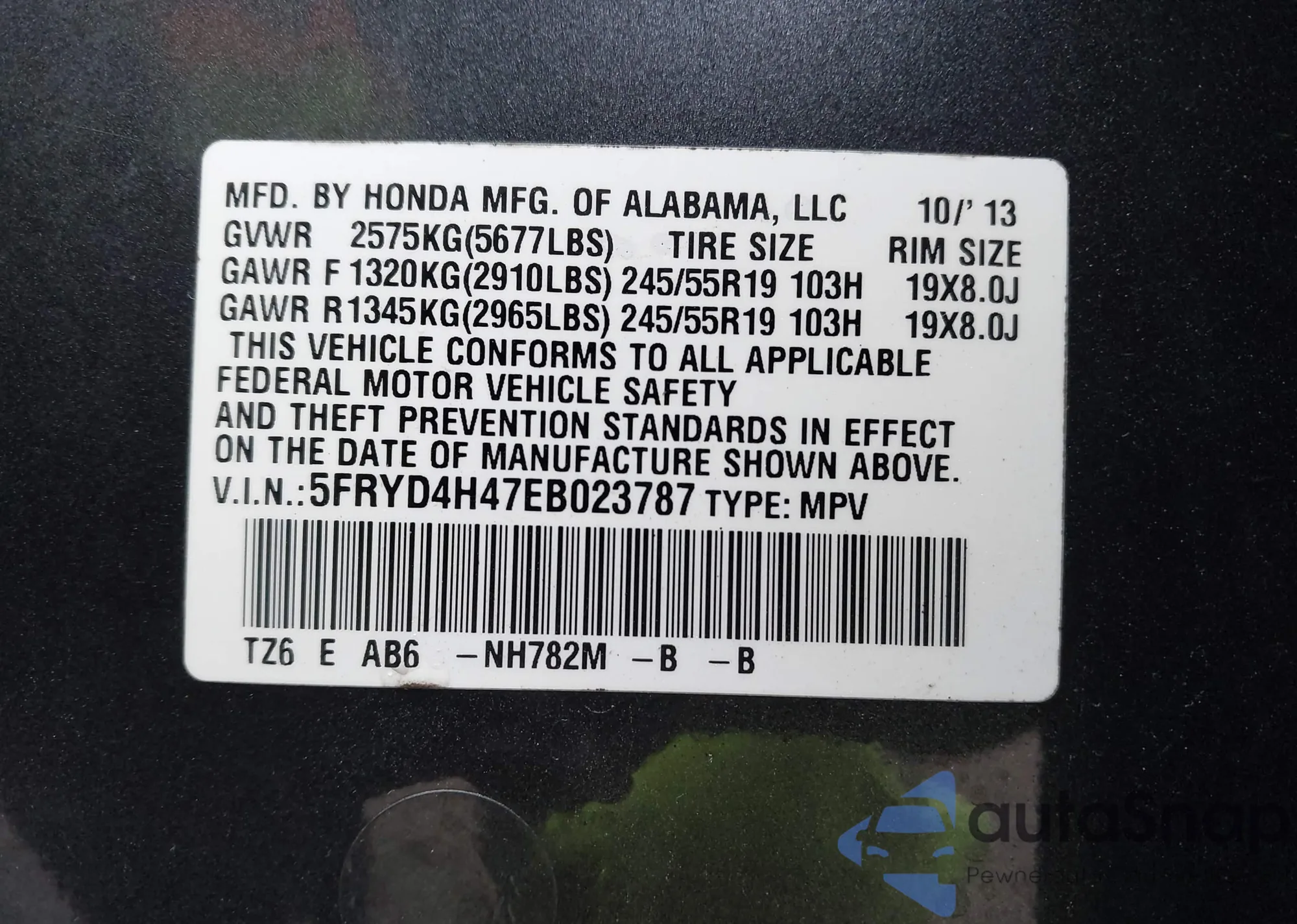 • VIN 5FRYD4H47EB023787